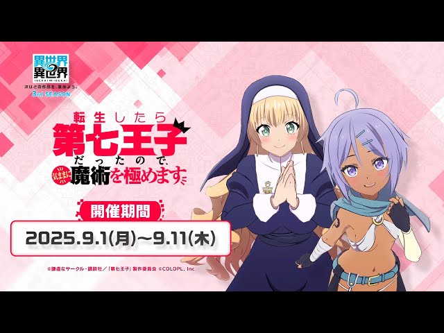 COLOPL Press Release: September 1, 2025 To Members of the Media The “3rd Season” of “Isekai∞Isekai,” a game that lets you enjoy other worlds even more, has begun! Characters from the popular anime “I Was Reincarnated as the Seventh Prince, so I’ll Enjoy Magic at My Own Pace” will be appearing!