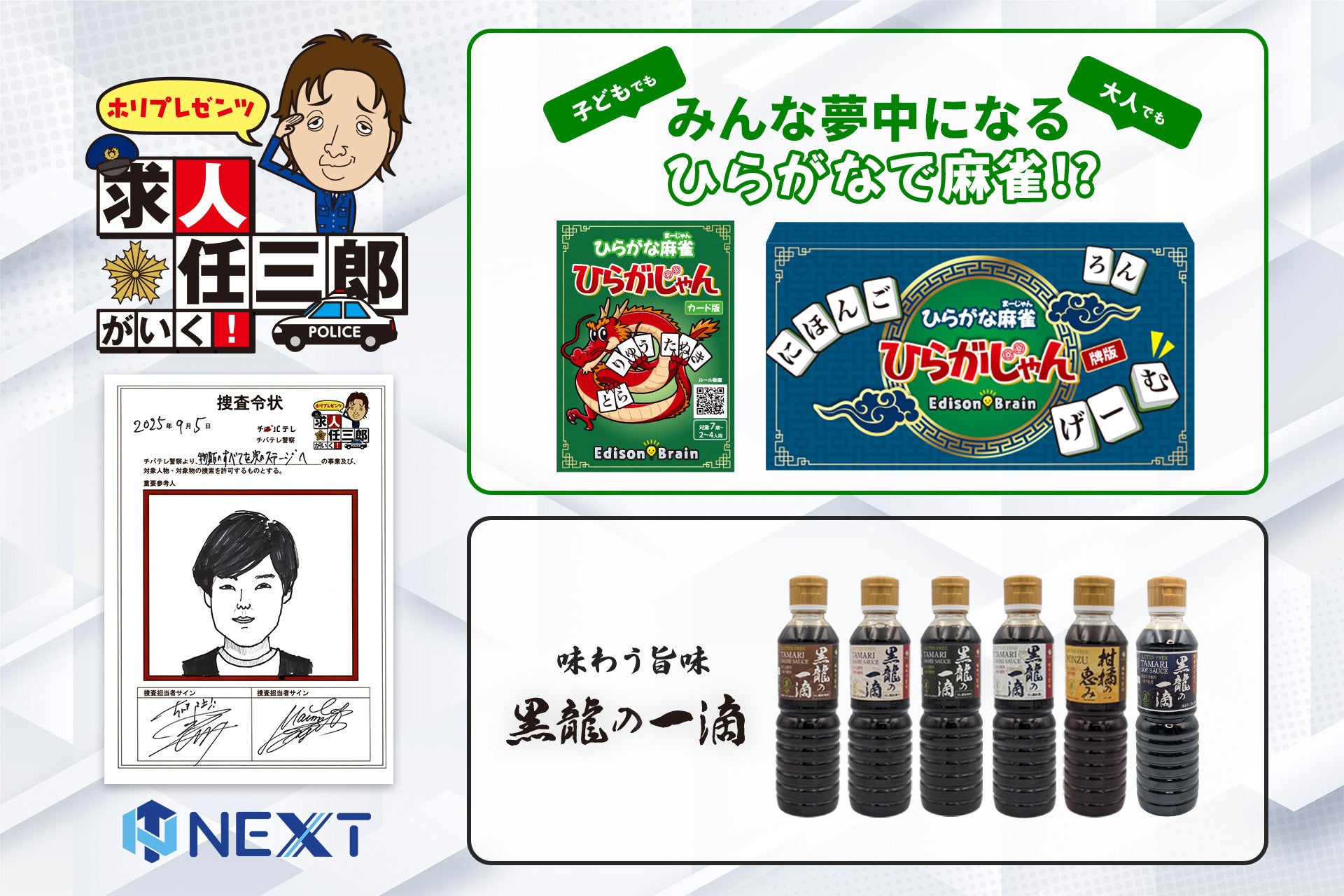 Recruitment Ninzaburo Goes!” NEXT Co., Ltd. was featured on Chiba TV’s “Hori Presents: Recruiting Ninzaburo Goes!” Entertainer Hori also praised the company, showcasing the appeal of its in-house developed products, including the popular board game “Hiraganajan” and gluten-free soy sauce.