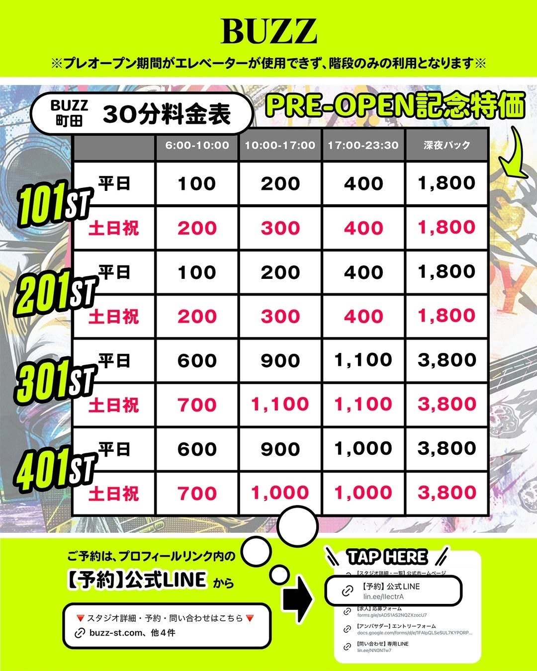 https://prcdn.freetls.fastly.net/release_image/141380/240/141380-240-2dcad28e2c8227e73c6c2a087ed21298-1080×1350.jpg ✦ Revitalizing the Machida dance scene with a special pre-opening event 【Pre-opening Limited-Time Offer】 Studio Rental: Special price (starting from 100 yen for 30 minutes) Dance School: No Registration Fee Campaign Note: Elevators are unavailable during the pre-opening period (please use the stairs).