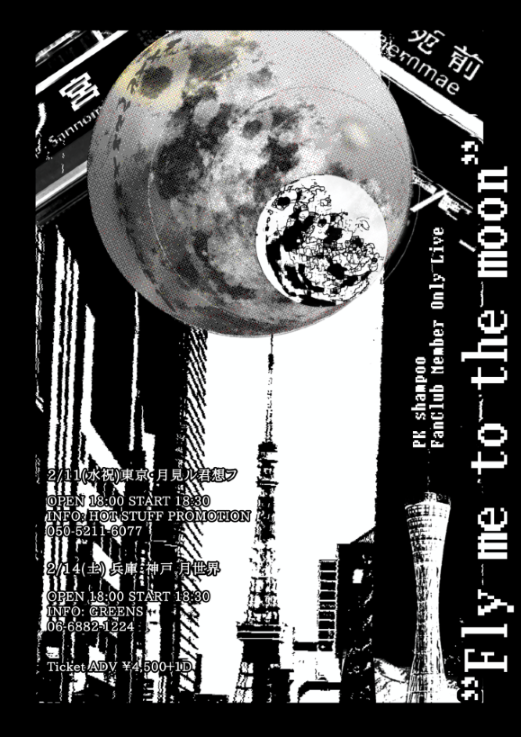 https://prcdn.freetls.fastly.net/release_image/19470/4555/19470-4555-e705fe5d640d895e631ad0bfa6055fa9-521×737.png Performance name: PK shampoo FanClub Members Only Live “Fly me to the moon” Performance Date: Wednesday, February 11th (National Holiday) Venue: Tsukimiru Kimisou, Tokyo OPEN 18:00 / START 18:30 Organizer: HOT STUFF PROMOTION Planning and production: From World Wide Web. Inquiries: HOT STUFF PROMOTION (050-5211-6077) Performance Date: Saturday, February 14th Venue: Kobe Club Gessusekai, Hyogo OPEN 6:00 PM / START 18:30 Sponsor: GREENS Planning and production: From World Wide Web. Inquiries: GREENS (06-6882-1224) [Official Fan Club Pre-sale] *E-tickets only / FC Pre-sale only 2025/10/13 (Monday holiday) 20:00 to 2025/10/19 (Sunday) 23:59 URL:
