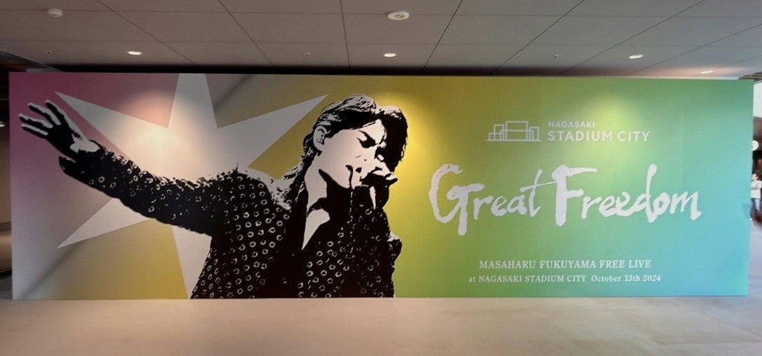 JAPANET HOLDINGS CO., LTD. Press Release: October 13, 2025 Nagasaki Stadium City Grand Opening: One year after Masaharu Fukuyama’s free concert “Great Freedom,” a surprise announcement was made at Peace Stadium, the venue. [Event report] Great Freedom Anniversary Regional Creation Nagasaki Co., Ltd. (Headquarters: Nagasaki City, Nagasaki Prefecture / CEO: Hideki Iwashita) held the “Great Freedom Anniversary” at PEACE STADIUM Connected by SoftBank to commemorate the first anniversary of the opening concert at Nagasaki Stadium City. At the venue, in addition to screenings of footage from the opening live concert and the special collaboration “NIGHT MIRAGE,” Masaharu Fukuyama made a surprise announcement that his live performance of “Great Freedom” would be filmed, and fireworks were displayed at Nagasaki Stadium City.