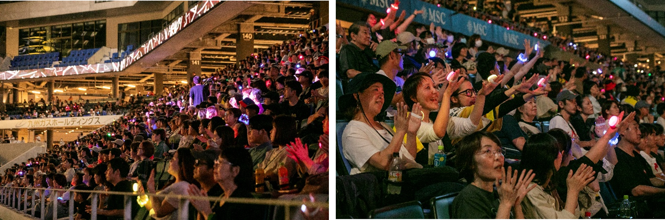 https://prcdn.freetls.fastly.net/release_image/16651/630/16651-630-985c195b7870fdf4cda564fcad455cda-2134×703.png Under the autumn night sky, approximately 4,000 guests flocked to Peace Stadium, and the venue was filled with excitement and emotion from start to finish. The event kicked off with an opening movie looking back on the history of Nagasaki Stadium City and creative producer Masaharu Fukuyama. As the project’s trajectory from its inception was shown, the audience erupted in warm applause and cheers, creating a sense of unity in the venue. Next, they aired live footage of “HELLO,” “Let’s Become a Family,” “Soubou,” “Sakurazaka,” “Banyu Gravitation,” and “Hikari.” During NIGHT MIRAGE, which combined the video and music of “Hikari,” the fantastical atmosphere created by the interweaving of music and light drove the venue into a frenzy.