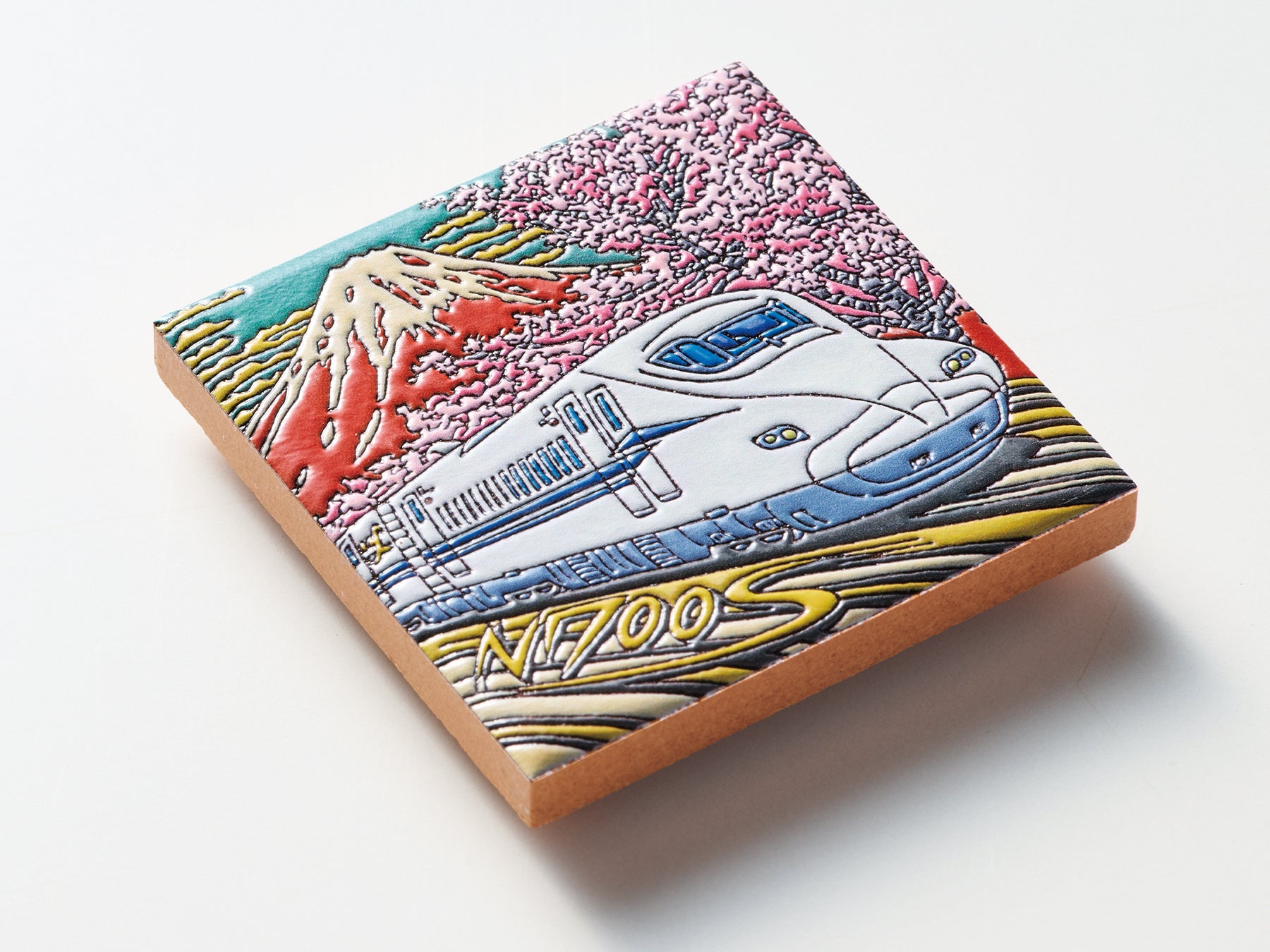 https://prcdn.freetls.fastly.net/release_image/80758/72/80758-72-211301a7a359339f8cfeeb818ce892dd-3900×2601.jpg This original design pays homage to Japan’s iconic cherry blossom tree and Hokusai’s Red Fuji. The beautiful, flowing form of the train and the sharpness of its nose are emphasized, creating a dynamic composition that depicts the Nozomi speeding along. The meticulously crafted three-dimensional magnet evokes the image of the future that lies beyond the rails, and every time you trace the contours of the rails with your finger, it will bring back memories of your travels and unforgettable moments. (Tsuchimochi Shinji)