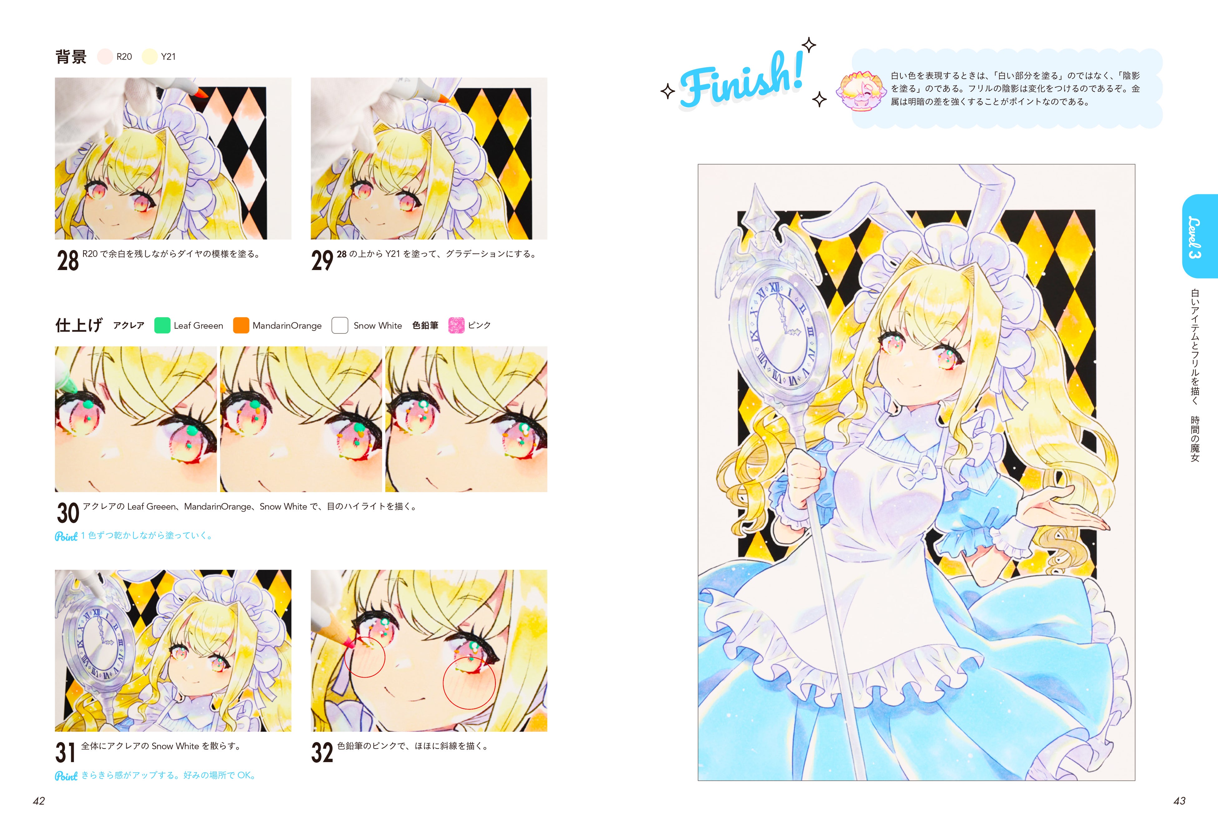 techniques!! Start by practicing coloring a “Basic Witch” using the Copic “Basic Six Colors” recommended by Mahou-sama! Step up your level by gradually increasing the number of colors used. You can easily learn even difficult expressions. The entire process was