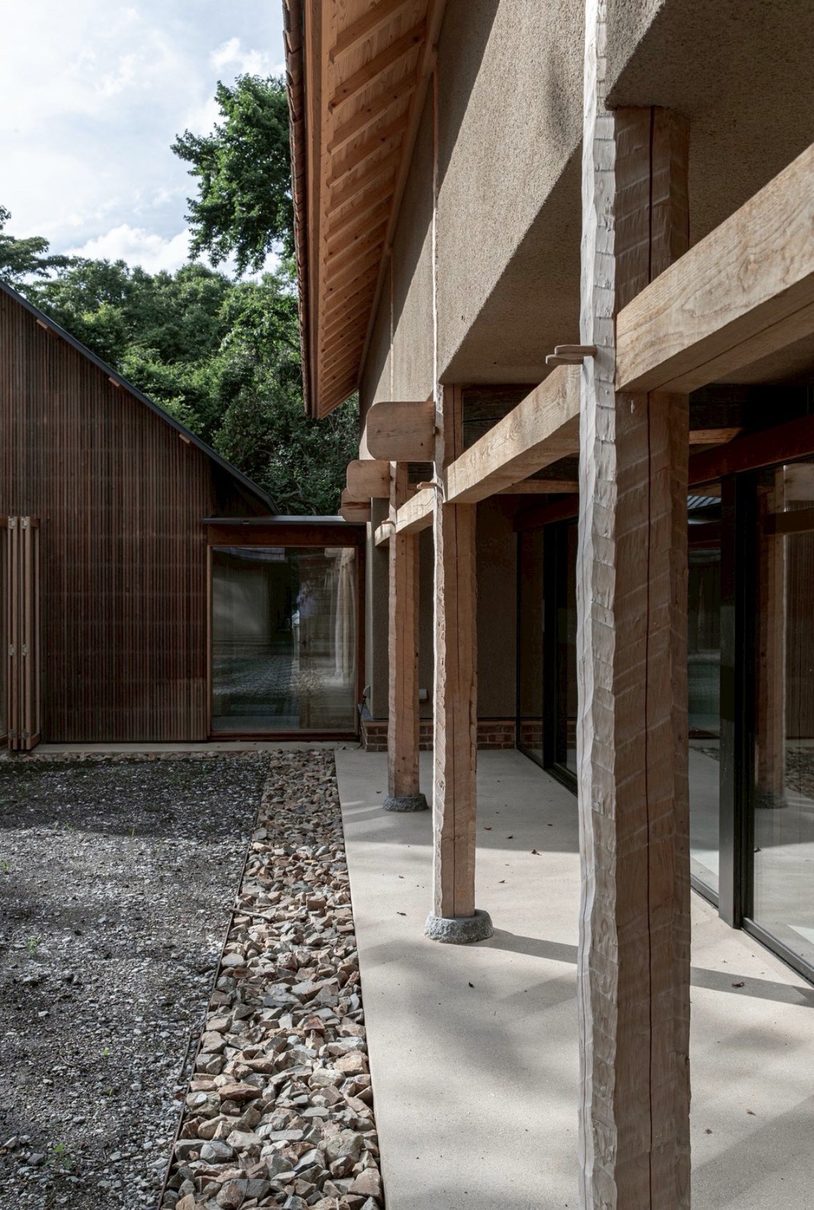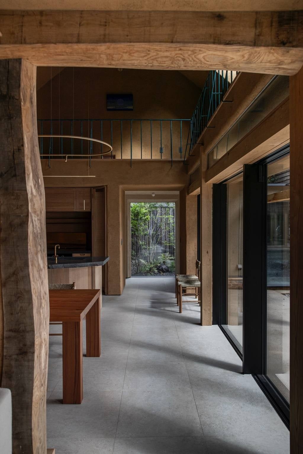 The wooden structure, which blends in with the forest, inherits the traditional timber frame construction method while using domestic chestnut wood for a powerful appearance. Equipped with insulation and the latest facilities, it is a “home that can be passed down to the future.”