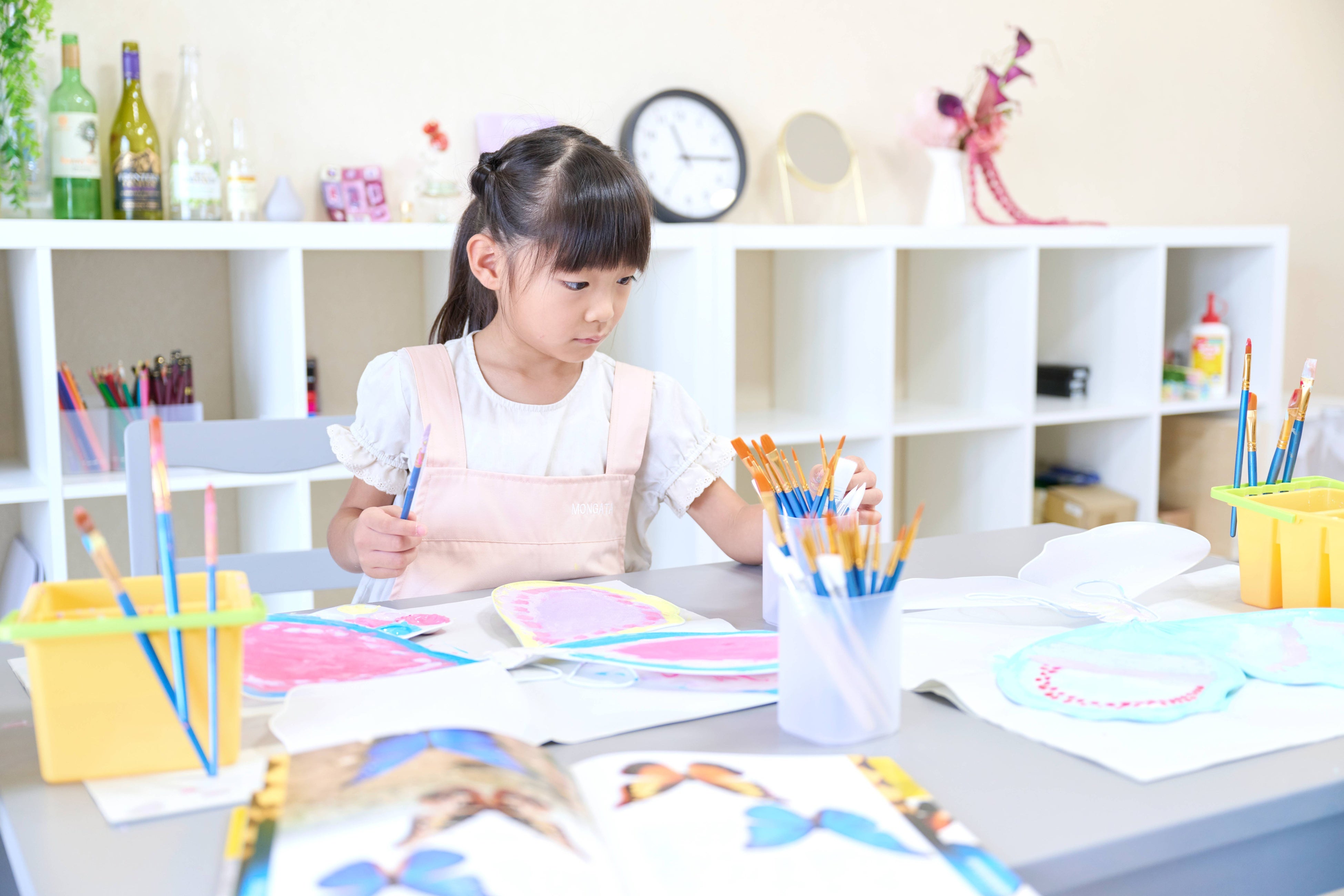 creativity, offered in two simple classes tailored to each age. └ Basic Class: For kindergarteners through junior high school students, this class cultivates free and rich sensibilities and creativity through crafts and painting. └ Technical Class: For fifth graders through high school students, this class hones specialized expressive skills such as drawing. In addition, MONGATA ART At SCHOOL, we maintain consistency in our education, with our “Five Important Things” as the core of our teaching. We have created a growth process based on the flow of classes at design universities, and while we have university-level education as our foundation, we place importance on experiences that children find “fun.” We also have a system in place that allows you to attend classes with peace of mind, such as reservations and transfers via app, and entry and exit notifications.