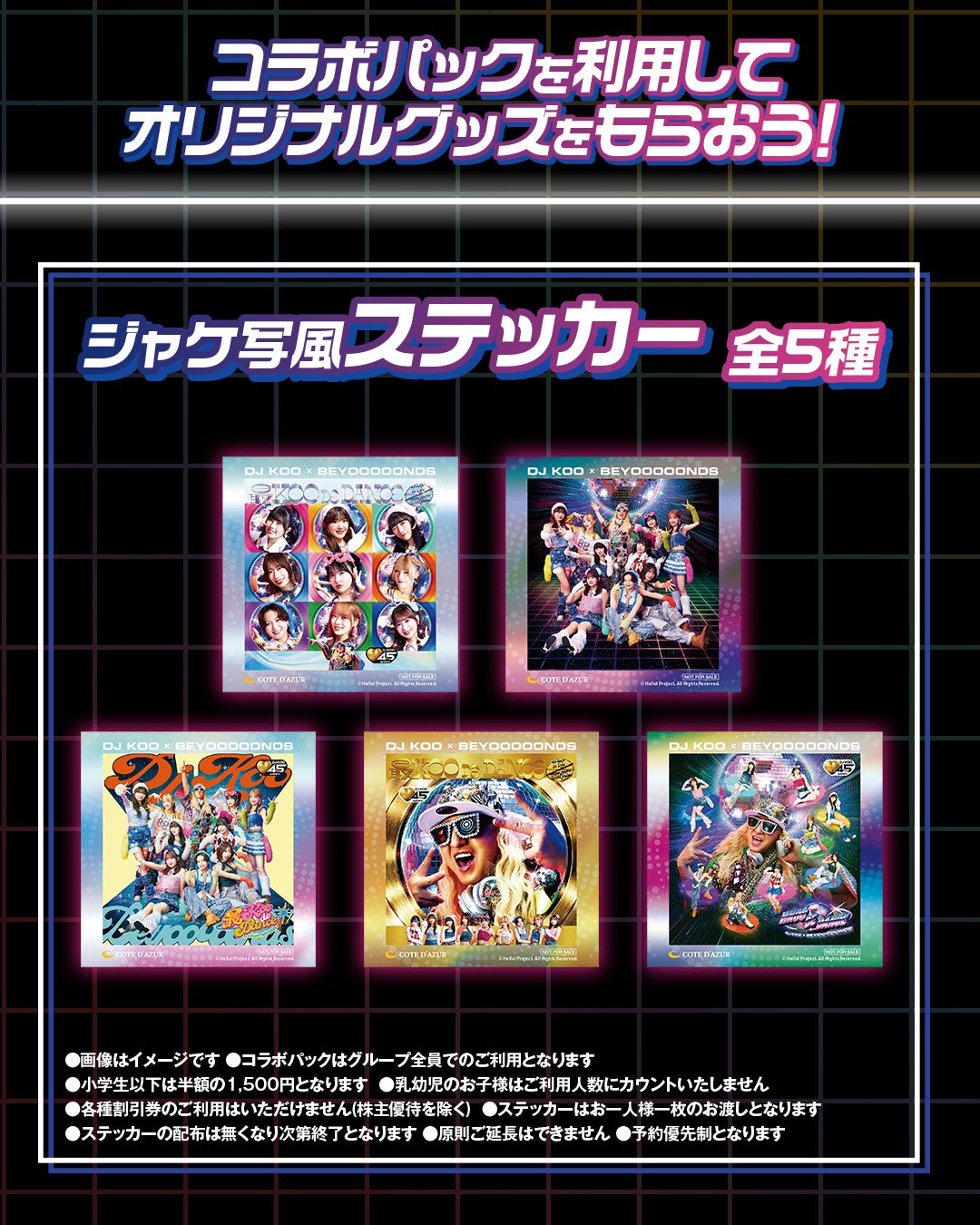 https://prcdn.freetls.fastly.net/release_image/75275/119/75275-119-718585b4e2519438d99b2d7a7f010319-1080×1350.jpg ■Collaboration pack This collaboration pack will come with exclusive stickers and the third Golden Potato “Matsusaka Beef,” which BEYOOOOONDS members tried their hand at food reviewing on the “KOO to D’Azur” program. Contents: 2 hours of karaoke One collaboration drink (with novelty gift) Golden Potato No. 3 “Matsusaka Beef” Collaboration Pack Exclusive Bonus: One “Jacket Photo-Style Sticker” (5 types in total) Price: ¥3,000 (tax included) *Children under elementary school age pay half price at ¥1,500 (tax included) Stores: 21 stores participating in the collaboration campaign Period: Friday, October 24, 2025 – Sunday, November 30, 2025 *Reservations are on a priority basis. Reservations will close once all the bonus items have been sold out.