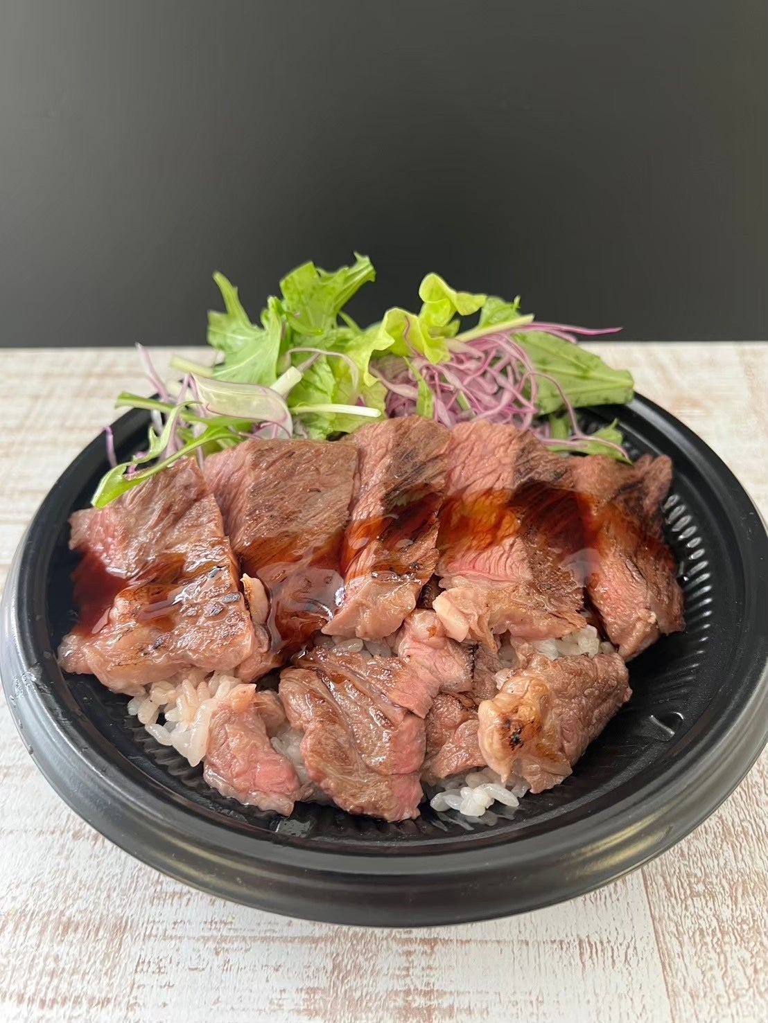 厳選したアメリカ産牛肩ロースの肉を使用し、炭の香りと特製ダレで仕上げた牛ステーキ丼は、一度食べたらクセになる味付け!品質の高い食材を、お客様に満足していただけるよう一つ一つ丁寧に調理します。