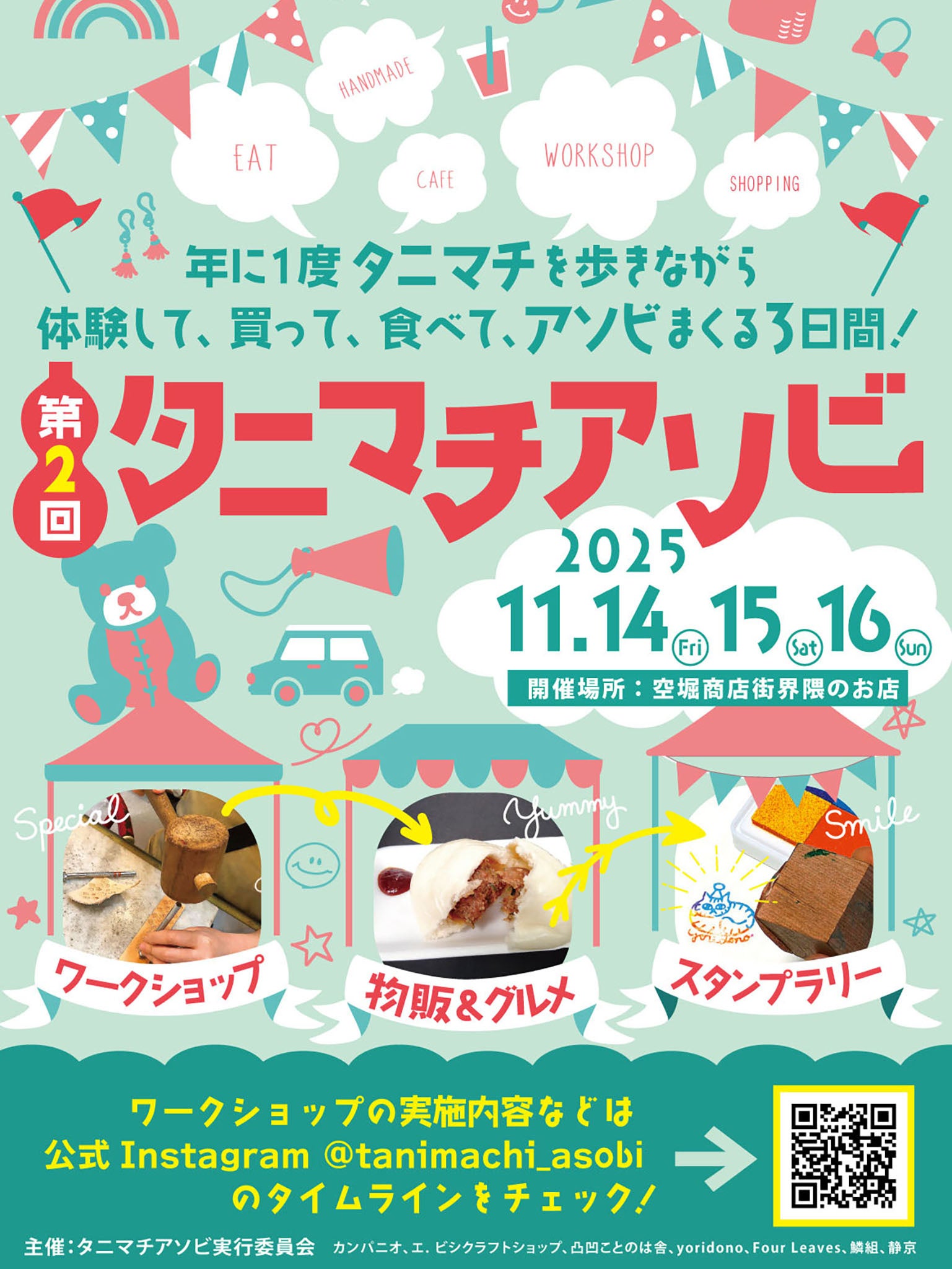 https://prcdn.freetls.fastly.net/release_image/171125/2/171125-2-056bce4b0b013f7758fce3eeb49fc078-1537×2048.jpg Venue status in 2024 This marks the second time “Tanimachi Asobi” has been held, following last year’s event. It’s a town walking event where participants can enjoy workshops, shopping, and dining while touring the Karahori neighborhood. Last year, 23 restaurants and 47 workshops were set up, drawing many participants. This year, new initiatives include a “Children’s Stamp Rally (for junior high school students and younger, free participation),” aimed at helping children become more familiar with “their town, Karahori,” and develop a sense of pride in their hometown. Our company has been involved in local projects such as “Kara Hori Rahen (shopping map, 30,000 copies published),” and this time, we were able to set up a store through that connection. We are challenging ourselves to create a new form of local communication through collaboration between a printing company and local creators, and we hope to support regional revitalization. [Event information] Event Name: Tanimachi Asobi 2025 Dates: Friday, November 14th, 2025 – Sunday, November 16th, 2025 *Event hours are subject to those of each participating store. Venue: Karahori Shopping Arcade, Chuo Ward, Osaka City ★ Participating stores will be marked with posters Tanimachi Asobi Official Instagram: