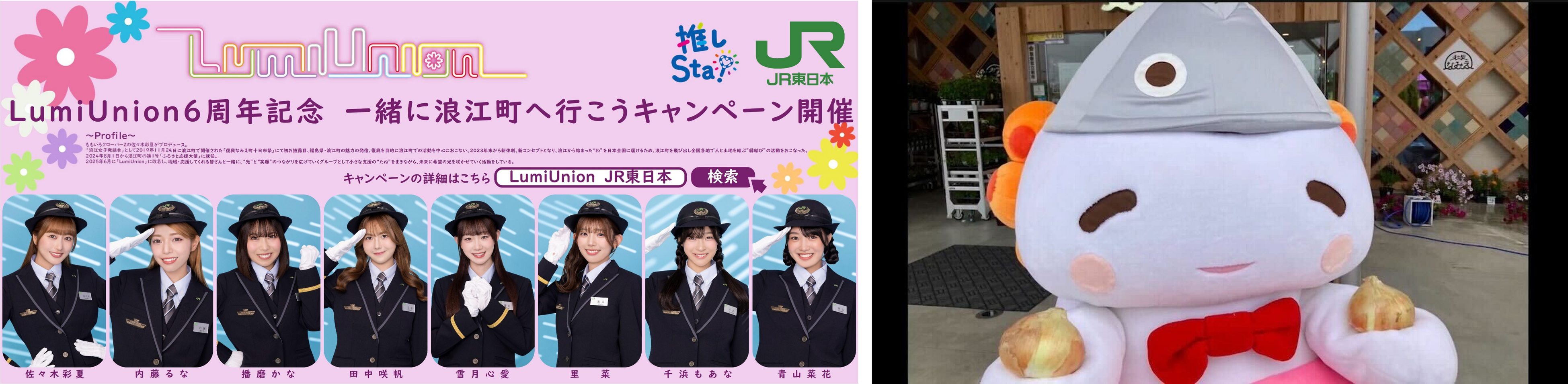 https://prcdn.freetls.fastly.net/release_image/17557/1269/17557-1269-9f27aeedfecbde0e5c897573512d813e-3900×1747.jpg 1.Campaign overview This campaign will coincide with the 2025 Namie Town Tokaichi Festival, a traditional large open-air market in Namie Town, Fukushima Prefecture, which will be held on Shinmachi Street for the first time in 15 years since the Great East Japan Earthquake. This year marks the sixth anniversary of the festival, which first debuted at the 2019 Namie Town Tokaichi Festival. We will be collaborating with LumiUnion, Namie Town’s first “Hometown Support Ambassador,” on three projects. We’ll be holding a chartered tour of some of the cars on the Hitachi Limited Express, and in a first for “OshiSta!”, we’ll be screening a special Namie Town movie along with LumiUnion campaign images at Ueno Station’s PLATFORM13. In addition, to commemorate the 6th anniversary of “LumiUnion,” a limited number of tickets will be sold at JRE MALL for exchange on-site for photos featuring characters wearing JR East uniforms. Enjoy your “oshikatsu” activities on trains, at stations, at JRE MALL, and in various other places. 2. Go to the Tokaichi Festival with LumiUnion members! Hitachi Express Train Private Event Tour ○ Tour Highlights – Members of “LumiUnion” dressed in JR East uniforms will ride with you between Ueno and Namie, allowing you to take photos. During the photo session, window and aisle seats will alternate seats. – Enjoy various events, such as talks between members, special in-car announcements, and a raffle for an autographed in-car poster. – A special atmosphere will be created with interior decorations and background music from “LumiUnion.” – Members will hand out limited edition novelty goods (acrylic stands). – Tour participants will be guaranteed a priority seat at the front of the line at the event on Shinmachi Street on Saturday, November 22nd. – Posters featuring the nicknames of tour participants will be displayed at Namie Station. A digital copy of the poster will also be given as a gift. (Display location) Outside the ticket gates at Namie Station (Display period) Saturday, November 22, 2025 – Friday, November 28, 2025 – Includes a breakfast set of rice balls and side dishes from Honnori-ya, made with carefully selected Koshihikari rice from Aizu, Fukushima Prefecture. ○ Cast (ride) Members (planned)