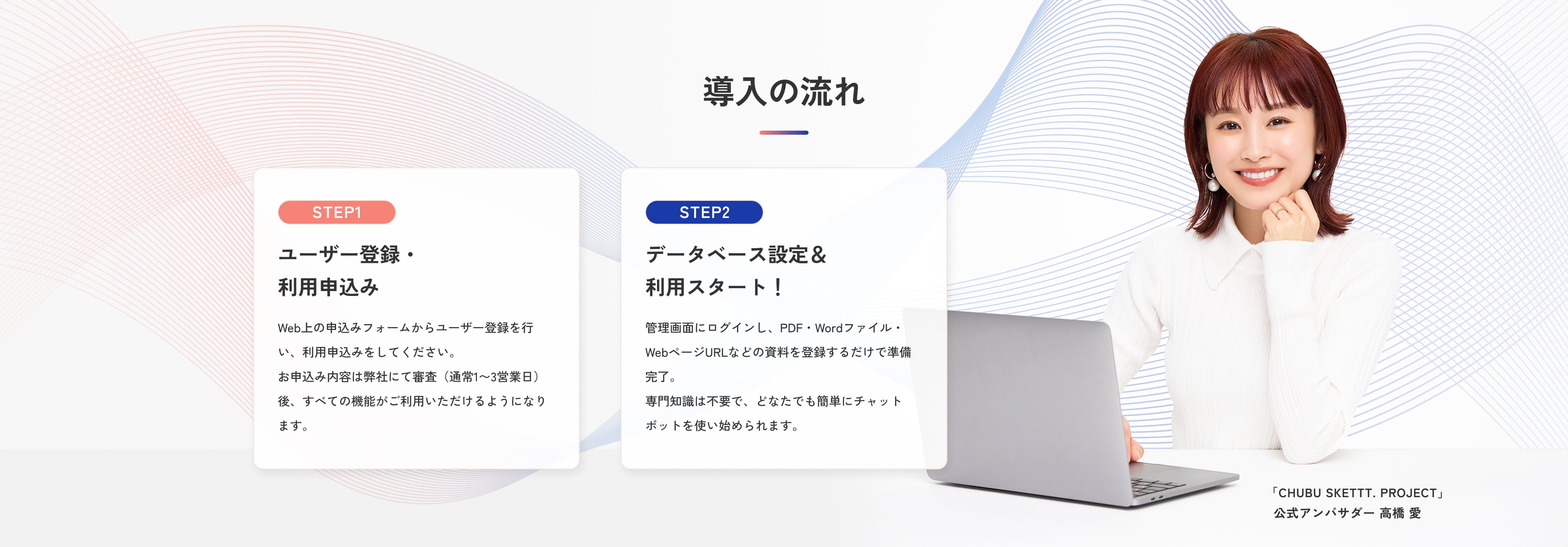 https://prcdn.freetls.fastly.net/release_image/82736/180/82736-180-a90975c64a3ad65c723f2a07e36804f0-1216×816.png We hired Ai Takahashi to raise awareness of our AI chatbot product and to promote our company’s brand. We’ll start by using her in landing pages and flyers, and plan to expand to exhibitions and online advertising in the future. We also share the philosophy of the “CHUBU SKETTT. PROJECT” and have joined as a partner. We hope to share her appeal based on our own experience using the product and work with local small and medium-sized businesses to create excitement. Wunderbar Co., Ltd. From Account Planner Usuba