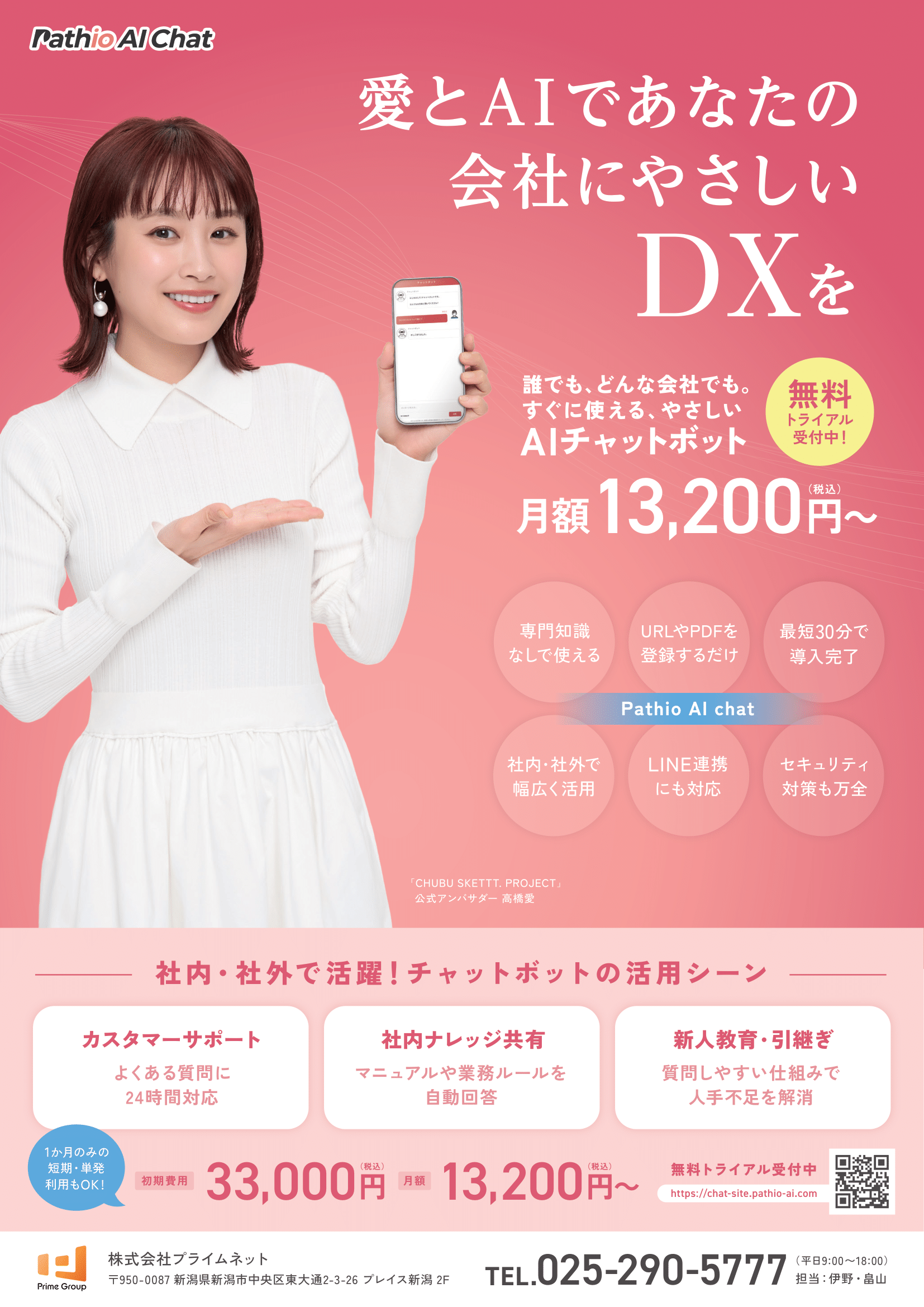 (Headquarters: Shibuya-ku, Tokyo; CEO: Yoshito Nagao), has published a case study interview with Prime Net Co., Ltd. (Headquarters: Niigata City, Niigata Prefecture; CEO: Yuji Kaizu). Plumnet Co., Ltd. is a company based in Niigata City, Niigata Prefecture, engaged in generative AI, web production, system development, and other businesses. With the expansion of its services nationwide, the company joined the “CHUBU SKETTT. PROJECT” and hired Ai Takahashi, who is also from the Hokuriku region. In addition, as a partner company of this project, we are working to revitalize the Chubu region. This time, we spoke to the company, which has just joined the project, about the background to their hiring of Ai Takahashi and their outlook for the future. Read the interview here What is “CHUBU SKETTT. PROJECT”