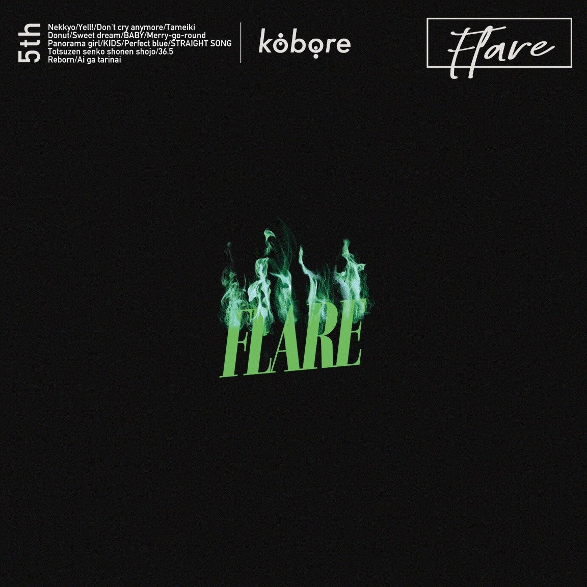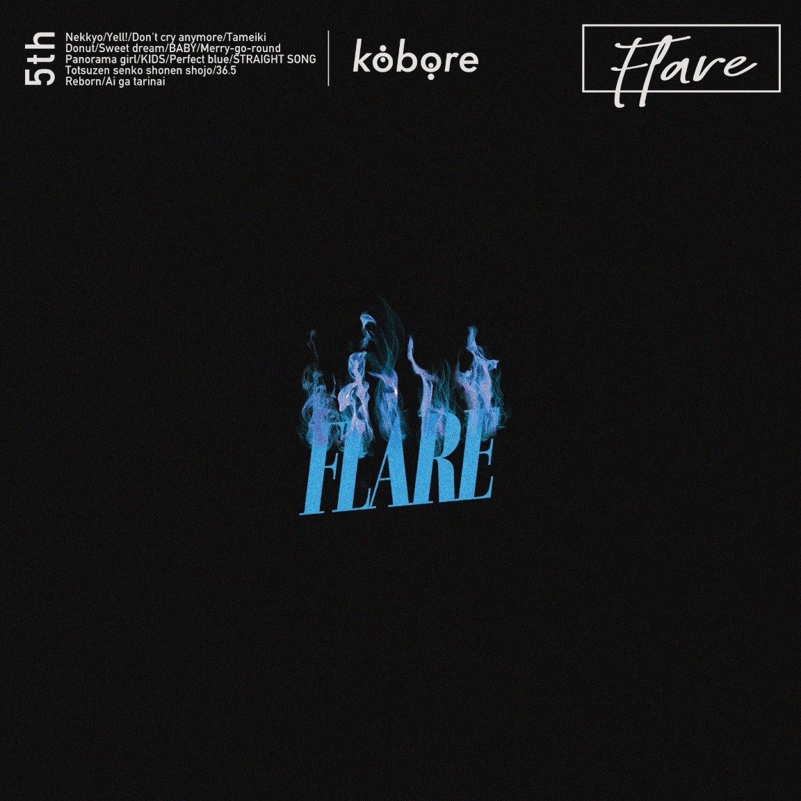 https://prcdn.freetls.fastly.net/release_image/19470/4565/19470-4565-c064d920fdf9d0459a3b014a3ebf3688-1152×1152.jpg 1. Enthusiasm 2. Yell! 3. Don’t cry anymore 4. Memiki 5. Donut 6. Sweet Dreams 7. BABY 8. Merry-go-round 9. Panorama Girl 10. KIDS 11. Perfect Blue 12. STRAIGHT SONG 13. Sudden Flash Boys and Girls 14. 36.5 *Theme song for the movie “Here Comes the Story” 15. Reborn 16. Ai ga Tarinai (Not Enough Love) *CD only Streaming URL: https://kobore.lnk.to/FLARE ■Profile Formed in 2015. Following the release of their demo CD “Yoru no Katasumi” in 2016, they gained attention, including an on-air appearance at the 2017 Victor Rock Festival. In September of the same year, they released their first mini-album, “Akeyuku Yoru Ni,” and toured 31 cities nationwide. Since then, they’ve continued performing live and producing music nonstop, releasing the single “Afureru” in March 2018 and embarking on a 12-city nationwide tour. Just two months later, in May, they released their second mini-album, “Yoru wo Mukaeni,” and were selected as Tower Records Men. The release tour was a long one, covering 53 locations across the country. In January 2019, they released their first full-length album, “Zero ni Natte,” and toured 22 locations across the country. While making their first appearances at major festivals such as ROCK IN JAPAN 2019, MONSTER baSH 2019, MURO FESTIVAL 2019, and FREEDOM NAGOYA 2019, they released their first EP “Ongaku no Yukue” at a breathtaking pace, embarked on the nationwide tour “Diamond TOUR 2019,” and appeared on FM802’s “RADIO CRAZY 2019” at the end of the year. In August 2020, they made their major debut with their second full album, “Fukei ni Natte,” and embarked on a tour that visited 35 locations across the country. In February and March 2021, they will hold the solo tour “kobore HARU ICHIBAN TOUR 2021,” visiting eight locations nationwide, the band tour “kobore ‘FULLTEN TOUR 2021’,” visiting nine locations from June to July, and the “kobore Solo Tour 2021 ‘ZERO RANGE TOUR’,” visiting 23 locations from September to November. In March 2022, they released their third full album, “Purple,” and held the “kobore VIOLET TOUR 2022,” which toured 29 locations nationwide. In October, they released “STRAWBERRY,” the ending theme song for the Fuji TV anime “Digimon Ghost Game,” their first anime tie-up song, and in the same month, they held the “kobore HOWLING TOUR 2022,” a joint band tour visiting 7 locations nationwide. In March 2023, they released their fourth full album, “HUG,” and in May of the same year, they held the “kobore one man 2023 ‘Dakishimete Kono Yoru wo Dakishimete Tour,'” which toured 19 locations across the country. From August to December of the same year, they held their first joint band event in three years, “FULLTEN,” at their hometown Fuchu Flight for five months. “FULLTEN” will be held in Tokyo, Nagoya, Osaka, and Fukuoka from February to March 2024, and in July in Kanazawa, Sendai, and Sapporo. Furthermore, the same event will be held in three cities: Tokyo, Nagoya, and Osaka from October to November. On November 27th of the same year, they released their fifth full album, “FLARE,” and in January of the following year, they embarked on the “FLARE TOUR 2025” tour, visiting 12 venues across the country in a joint performance and nine solo shows. To celebrate their 10th anniversary in 2025, the band has announced their first-ever hall performance at their hometown venue, Fuchu no Mori Art Theater, and tickets are already sold out. Kobore continues to grow at an unprecedented speed, so keep an eye on them! <Information> Official Website / Paid Content “OCHIKOBORE”: http://kobore.jp Columbia Special Website: https://columbia.jp/kobore/ X: