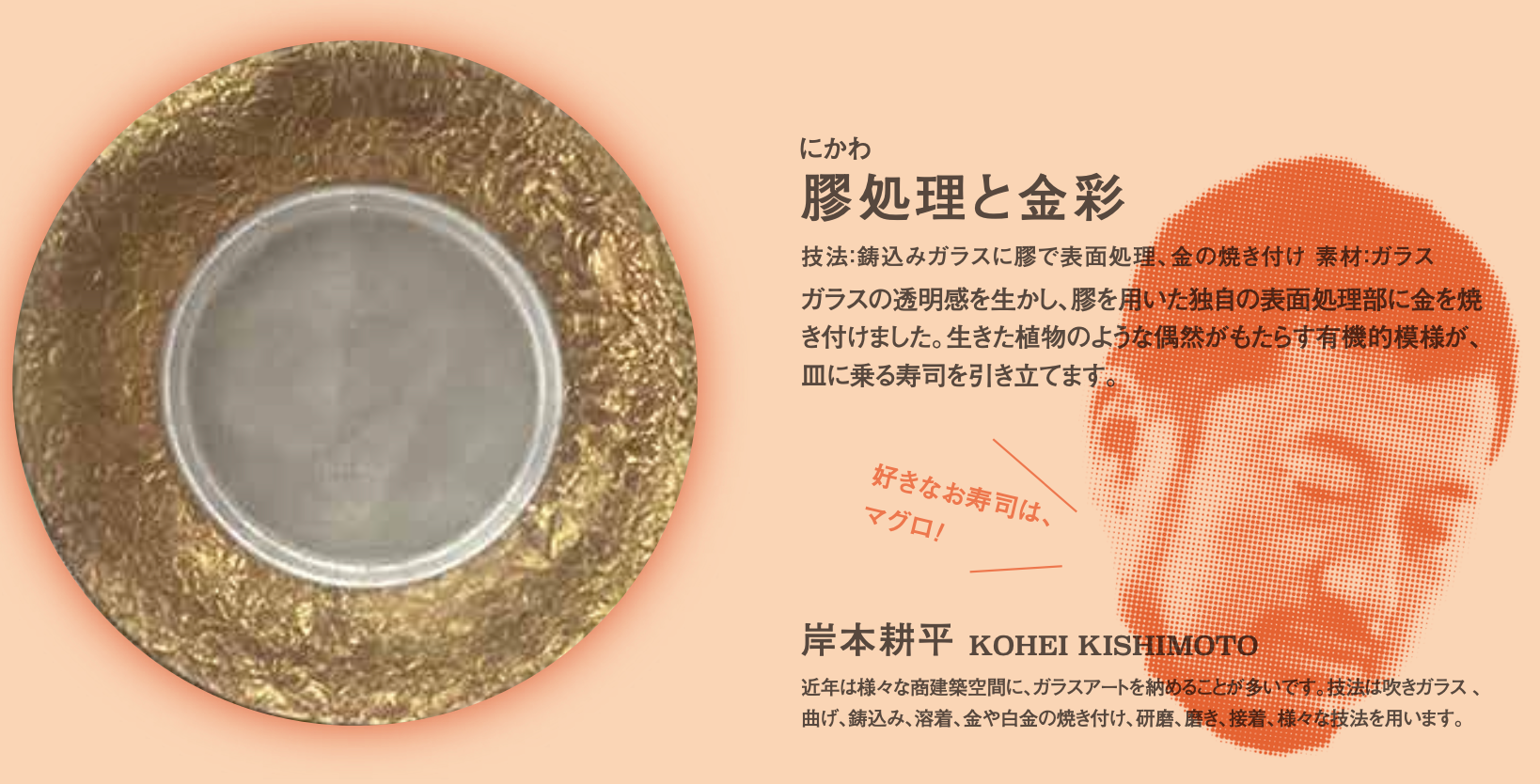https://prcdn.freetls.fastly.net/release_image/142170/13/142170-13-5aa5150793e6e44434ef6cc6de16be62-1638×834.png Title: Glue treatment and gold leaf, Technique: Surface treatment with glue on cast glass/fired gold, Material: Glass, Artist: Kishimoto Kohei The skills of a total of 24 creators will shine Takumi Azechi/Lacquer, Mitsuhiro Kyoda/Gold Leaf, Takeshi