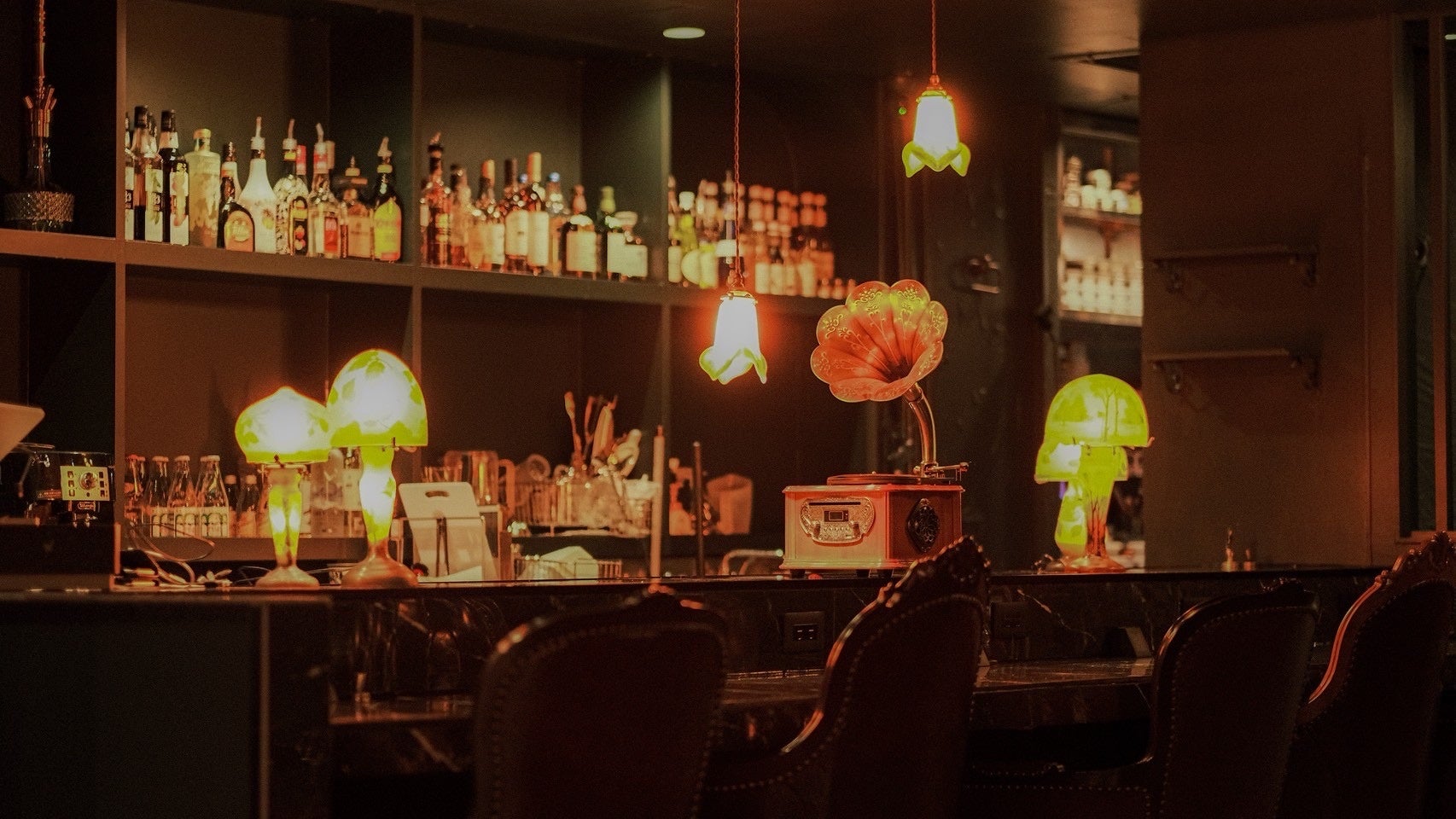 URL: https://prcdn.freetls.fastly.net/release_image/49325/65/49325-65-3d94e55ed358143322dcd346f8583ee8-1706×960.jpg counter Based on the concept of “A journey through time woven in an ancient castle,” you can enjoy shisha and drinks to your heart’s content in a relaxing antique-style space, woven with the sounds of jazz as time flows. Store characteristics/commitments ● Spatial Design and Atmosphere The interior theme is a classic look with an “old castle” motif. The walls are painted in the deep gray-green “Vert Noir,” and indirect lighting creates shadows.