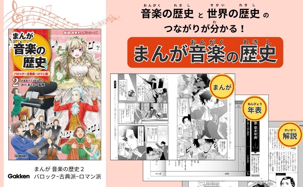Gakken Holdings Co., Ltd. Press release: October 16, 2025 To Members of the Press [Music x World History] Easy enough for elementary school students to understand! Volume 2 of “Manga Music History” is finally published! With the International Chopin Piano Competition now being held, this manga introduces the “era of Chopin” and the history of classical music in an easy-to-understand way. Gakken Inc. (Tokyo, Shinagawa; President and CEO: Tatsuya Nanjo; hereinafter “Gakken”), a group company of Gakken Holdings Co., Ltd. (Tokyo, Shinagawa; President and CEO: Hiroaki Miyahara), released the second volume of the series, “Manga Music History: Baroque, Classical, and Romantic Periods,” on Thursday, October 16, 2025.