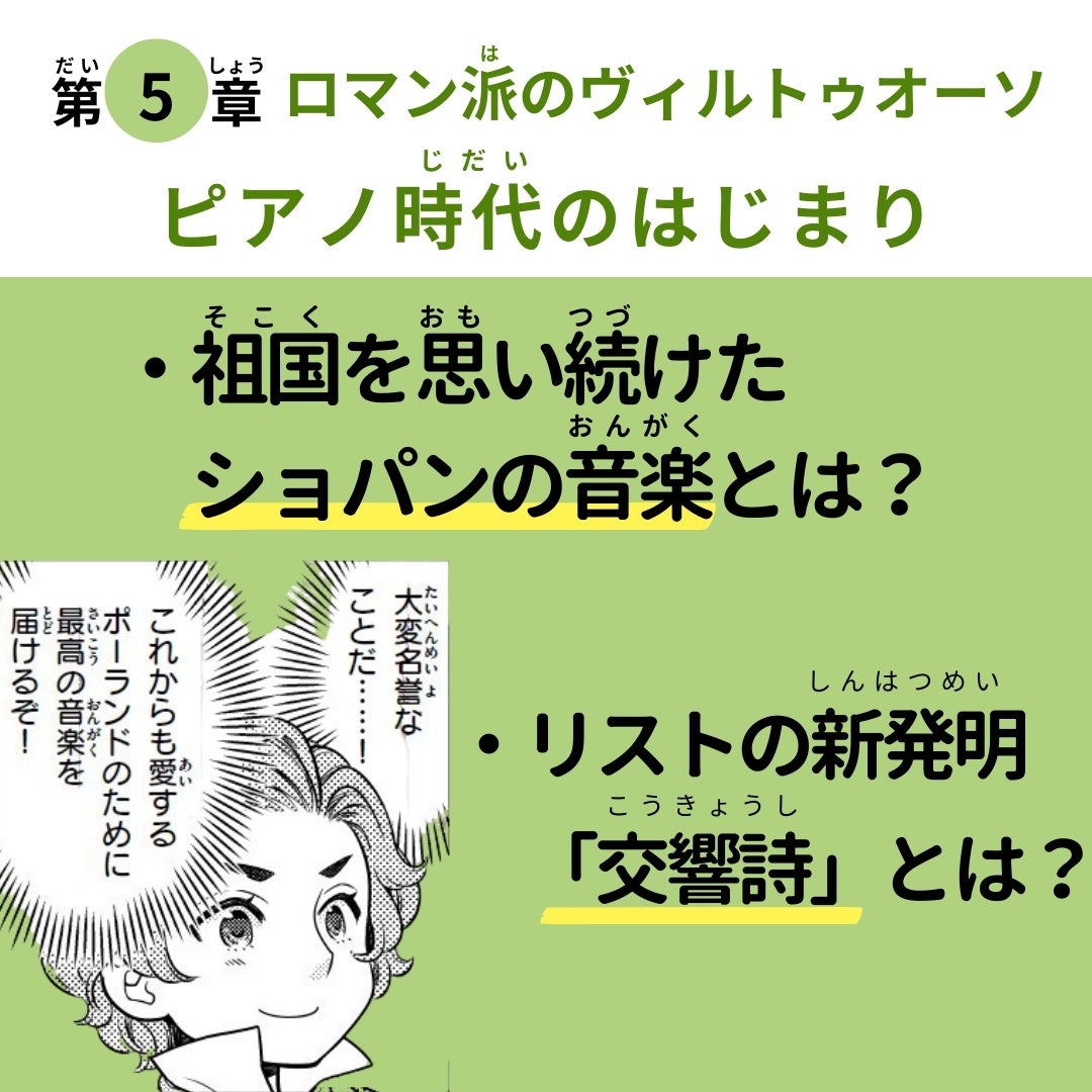 https://prcdn.freetls.fastly.net/release_image/2535/8248/2535-8248-b400560a4a793cd8247abbdf0f82b603-1080×1080.jpg ●Chapter 5: Romantic Virtuosos and the Beginning of the Piano Era ・Chopin’s music, always remembering his native Poland ・Liszt’s new invention, the “symphonic poem” …and more ●Chapter 6: Romanticism during the German Revolution: Tradition and Innovation in German Music ・The Schumanns at the Mercy of the German Revolution ・Brahms, who valued tradition …etc.