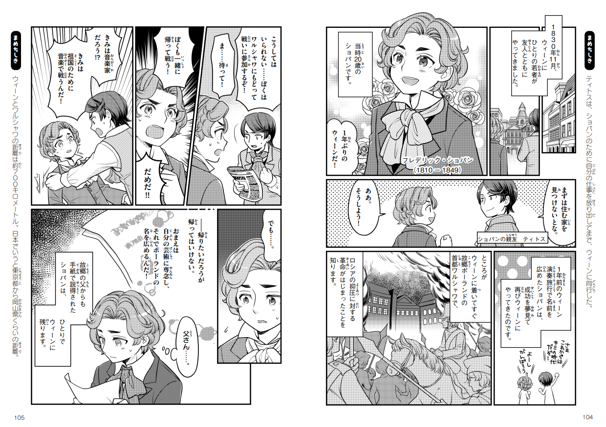 https://prcdn.freetls.fastly.net/release_image/2535/8248/2535-8248-7150a4f60770d32df904623f9d59918c-970×600.jpg ●Volume 2 is “The Age of Chopin” — The Golden Age of Classical Music, When the Piano Became the Main Player Volume 2 covers the period from the Baroque to the early Romantic period (c. 1600-1850), providing a clear introduction to the relationship between politics, religion, society, and music. This period was also the “golden age of the piano,” when the piano was born and music changed dramatically with the development of keyboard instruments. From Bach, Mozart, Beethoven, and Chopin… This book conveys the charm of classical music to children in an enjoyable way, using comics and ample commentary to connect the musical flow. This book will be released around the time of the Chopin International Piano Competition, which brings together pianists from around the world. This is also a recommended read for those who became interested in classical music as a result of the competition.