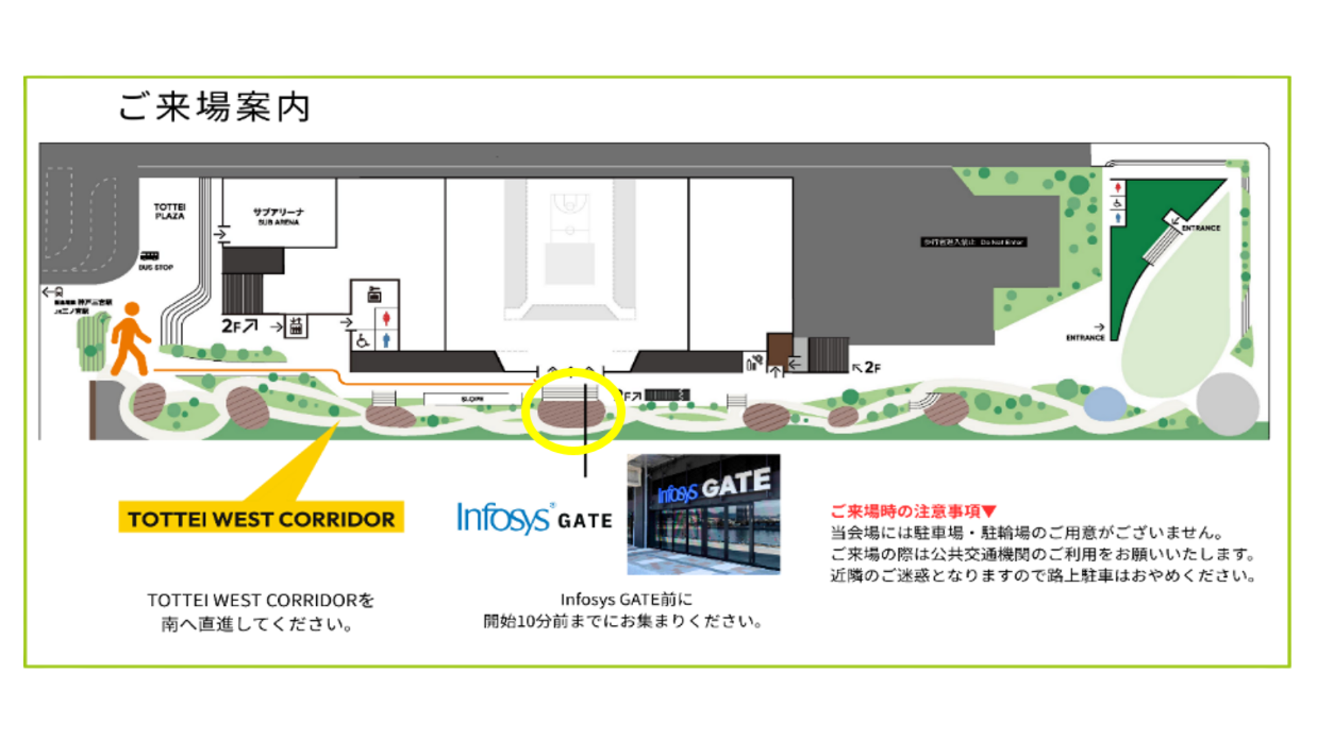 https://tixplus.jp/feature/glion-tour5/ Ticketing method: Please issue and present your ticket via the official TOTTEI KOBE app. Apple Store https://apps.apple.com/jp/app/tottei-kobe/id6739199073 Google Play https://play.google.com/store/apps/details?id=jp.co.onebrightkobe.totteikobe_app *Paper tickets and screenshots will not be accepted for admission. *For group applications, please contact us via the following page. https://contact.totteikobe.jp/webapp/form/26597_zinb_1/index.do Notes: – There is no public parking. Please use public transportation when coming to the event. Please refrain from parking on the street as it will cause inconvenience to neighbors. – Please wear comfortable clothing and shoes. ・Please follow the instructions of on-site staff when moving around during the tour. ・Please refrain from entering areas without directions. ・The tour may be photographed, interviewed, and photos and videos may be used for public relations purposes. Thank you for your understanding. Access: https://www.totteikobe.jp/access 【Meeting place】 Infosys GATE square, west side of the Arena, 1st floor