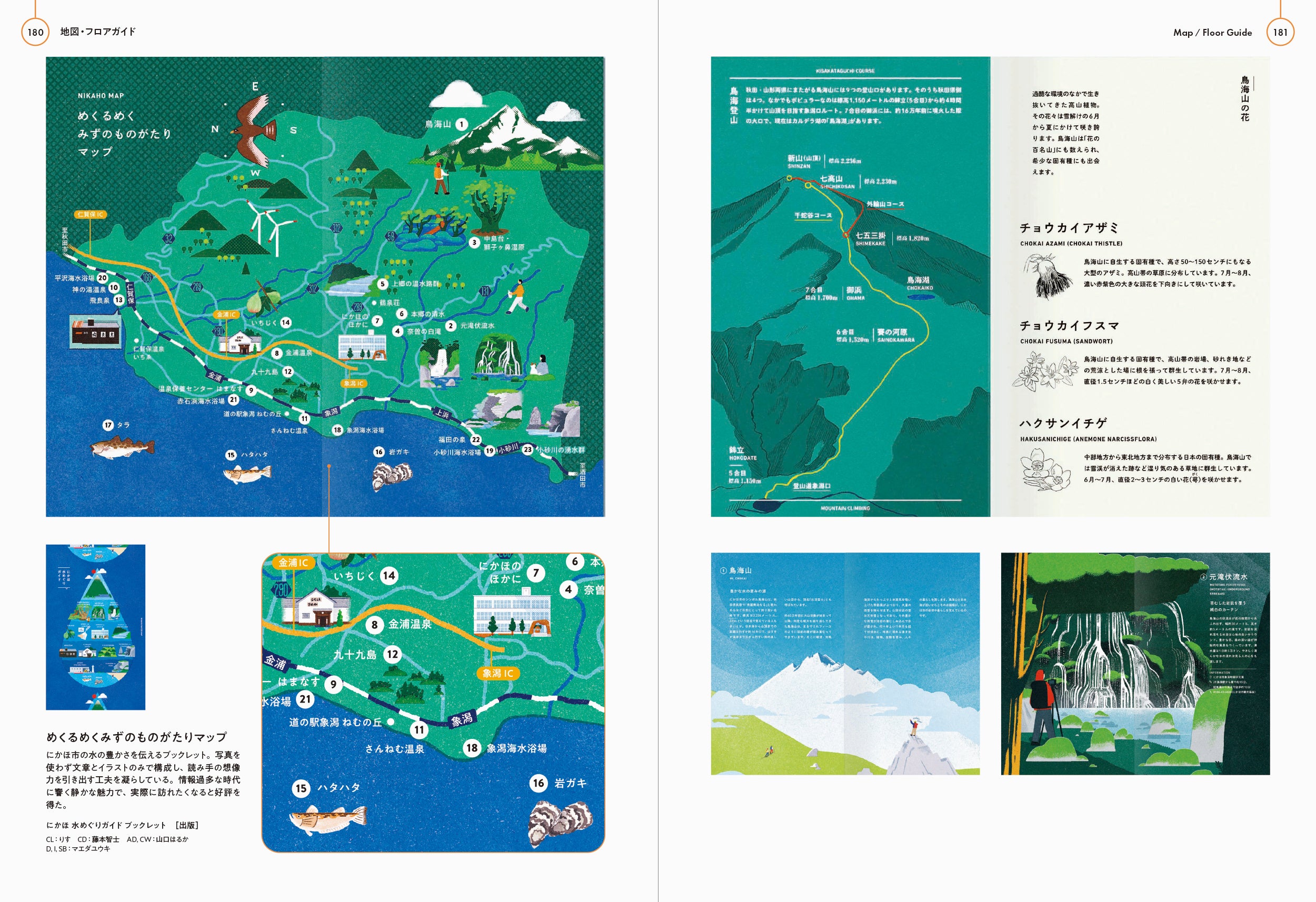 URL: https://prcdn.freetls.fastly.net/release_image/12505/1146/12505-1146-280b0e6e8927f00a713451eba2d5e2c2-2500×1714.jpg A booklet conveying the bounty of Nikaho City’s water resources. Comprised solely of text and illustrations, without any photographs, the book is designed to stimulate the reader’s imagination. Its quiet charm resonates in an age of information overload, and has been well-received as a way to make people want to visit in person.