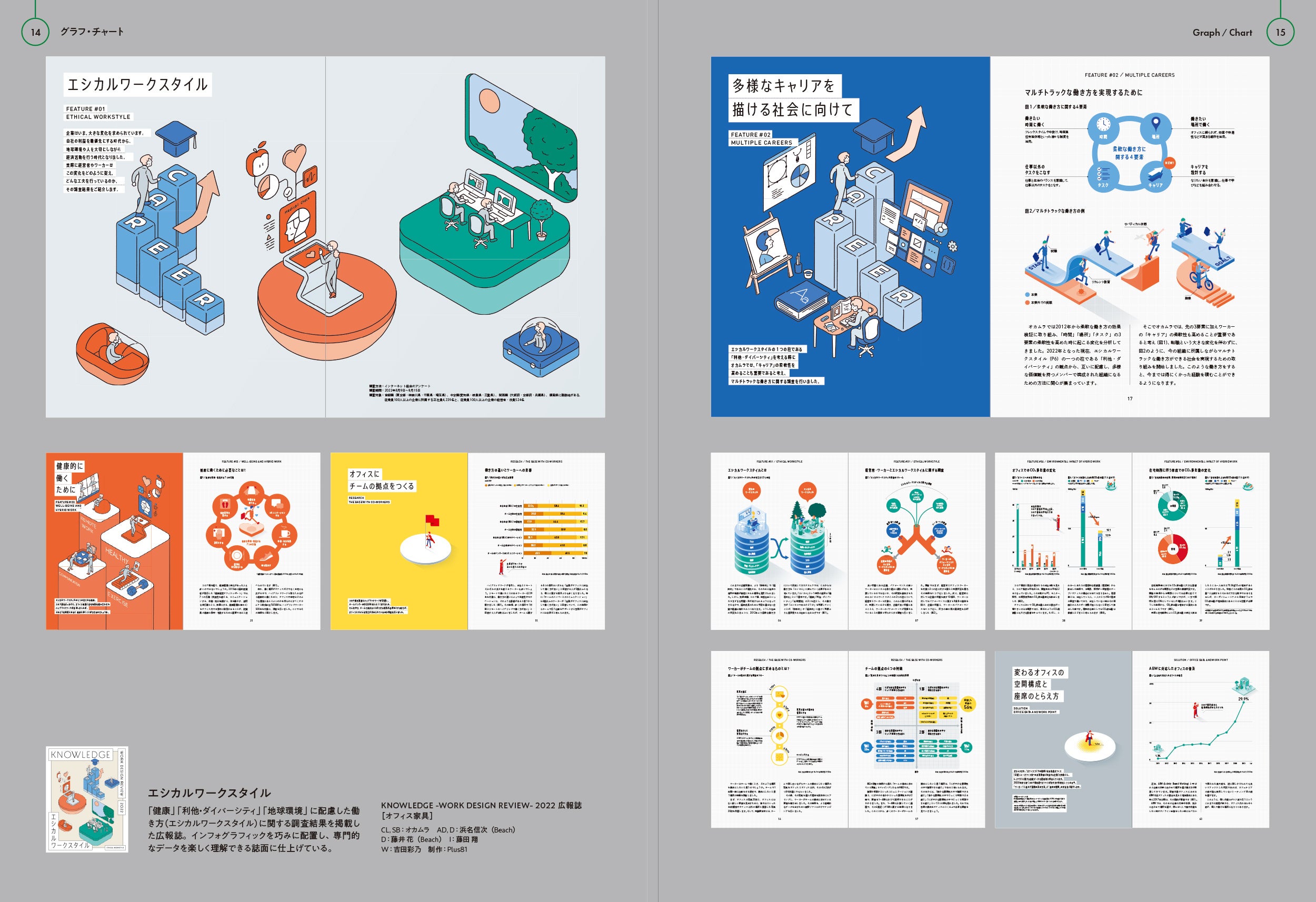 https://prcdn.freetls.fastly.net/release_image/12505/1146/12505-1146-3a43e3b97c713b46fee7ed02f635dfb9-2500×1714.jpg A public relations magazine featuring survey results on work styles (ethical work styles) that take into consideration “health,” “altruism/diversity,” and “the global environment.” Infographics are cleverly placed to create a magazine that makes specialized data easy to understand.