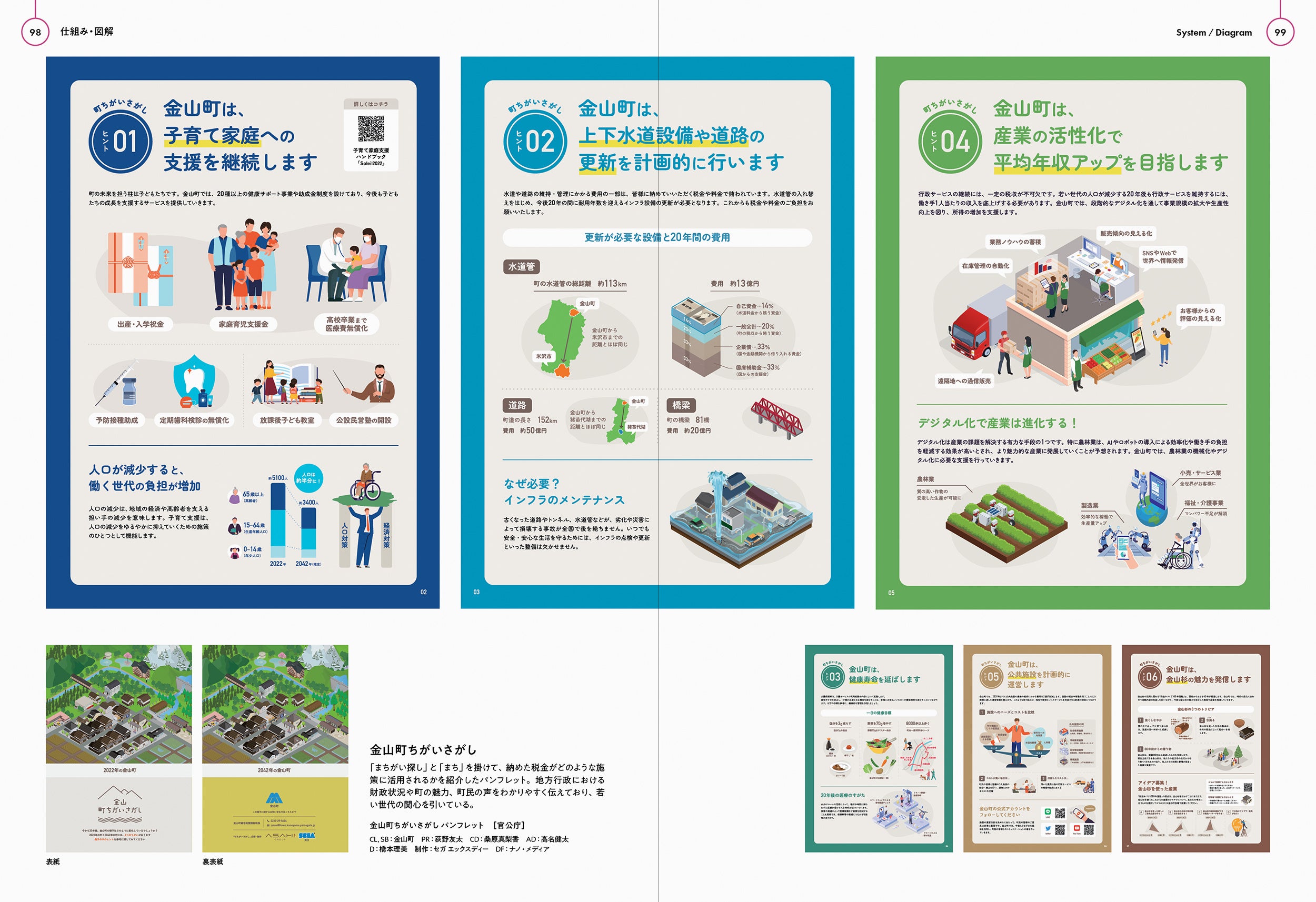 https://prcdn.freetls.fastly.net/release_image/12505/1146/12505-1146-4436acfa2a50b849d08a536830aae0ed-2500×1714.jpg A pamphlet that plays on the words “spot the difference” and “town” to explain how taxes paid are used for various projects. It clearly conveys the financial situation of local government, the town’s attractions, and the voices of townspeople, attracting the interest of younger generations.