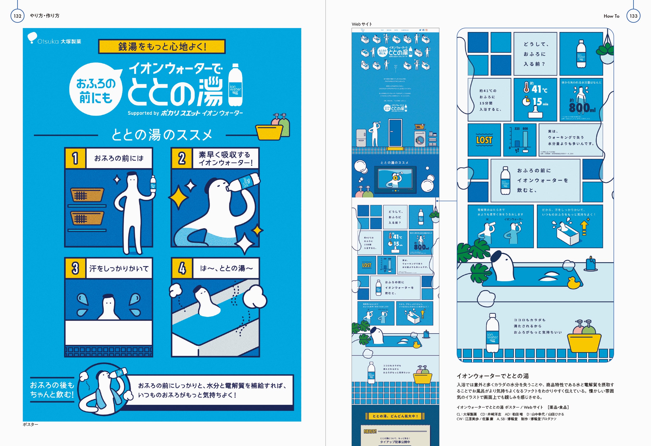 https://prcdn.freetls.fastly.net/release_image/12505/1146/12505-1146-67a10f1154fb6facede0bf7a9b36788d-2500×1714.jpg This ad clearly conveys the fact that bathing can actually cause a surprising amount of body fluid loss, and that consuming the product’s water and electrolytes makes bathing more comfortable. The nostalgic illustrations create a sense of familiarity even on screen. Image