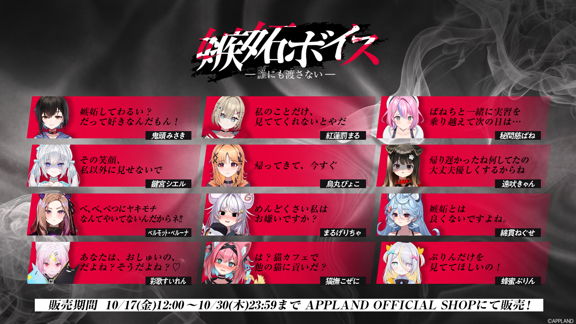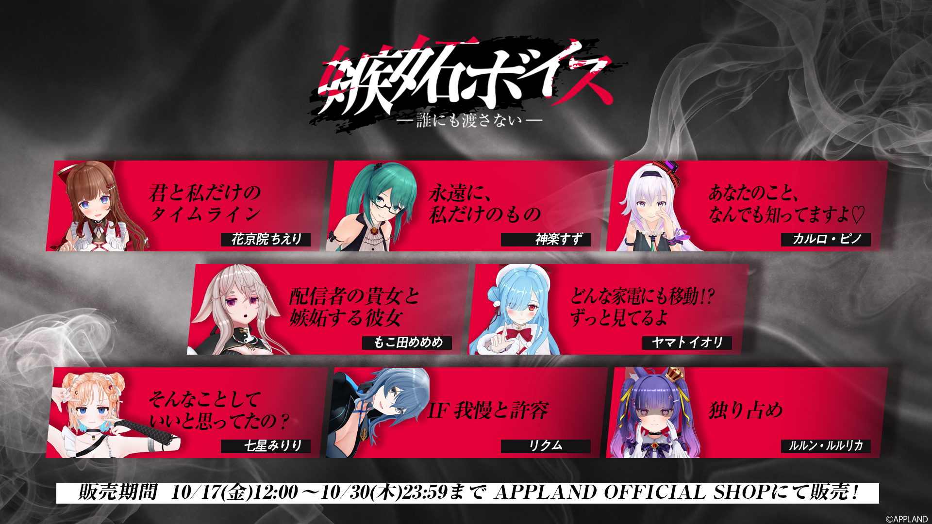 【UPLAND Co., Ltd.】 The binaural recording “Jealousy Voices – I Won’t Give Them to Anyone,” by members of Upland’s “.LIVE” and “V-Pai,” will go on sale from Friday, October 17th!