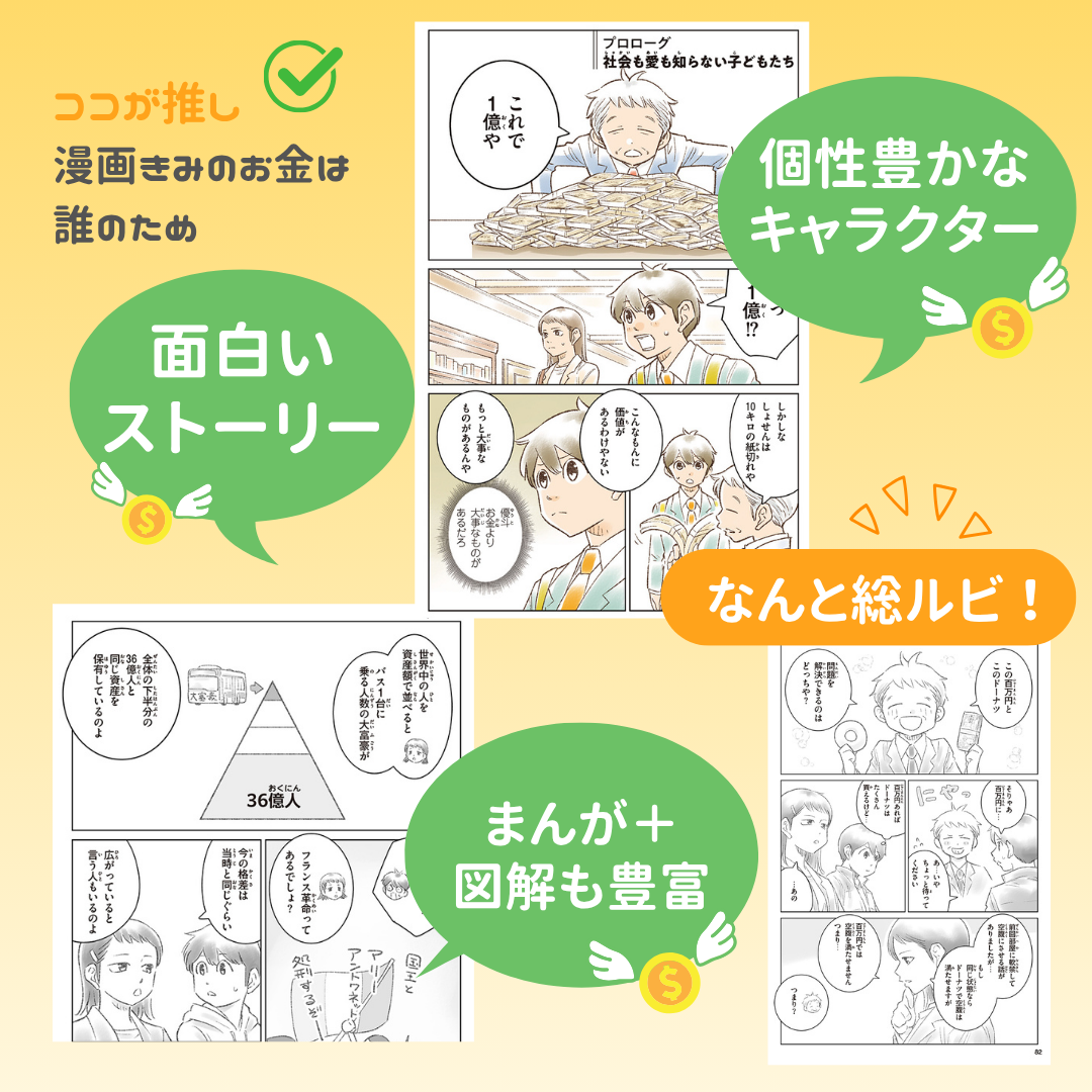 https://books.rakuten.co.jp/rb/18294686/ “What is money for?” The best-selling novel “Who is Your Money For?” by social financial educator Manabu Tauchi has been made into a manga that’s easy for anyone to read. What is the true role of money? Why do we work and why do we spend money? Modern-day financial worries and questions that you’re too embarrassed to ask about are explained in a fun way through stories and manga! This thought-provoking lesson on money will enrich both life and society, delving into the essence of economics and happiness, provoking thoughts for both adults and children. ◆Synopsis◆ “I want to get a high-paying job in the future,” our protagonist, Yuto, a second-year junior high school student, thought. One day, he goes to a mysterious mansion with Nanami and meets a mysterious man known as “The Boss.” The man says, “If you can understand the true nature of money, I’ll give you this whole mansion.” And so begins The Boss’s lesson on money. But what shocking truth awaits? Educational Manga with Recommended Points