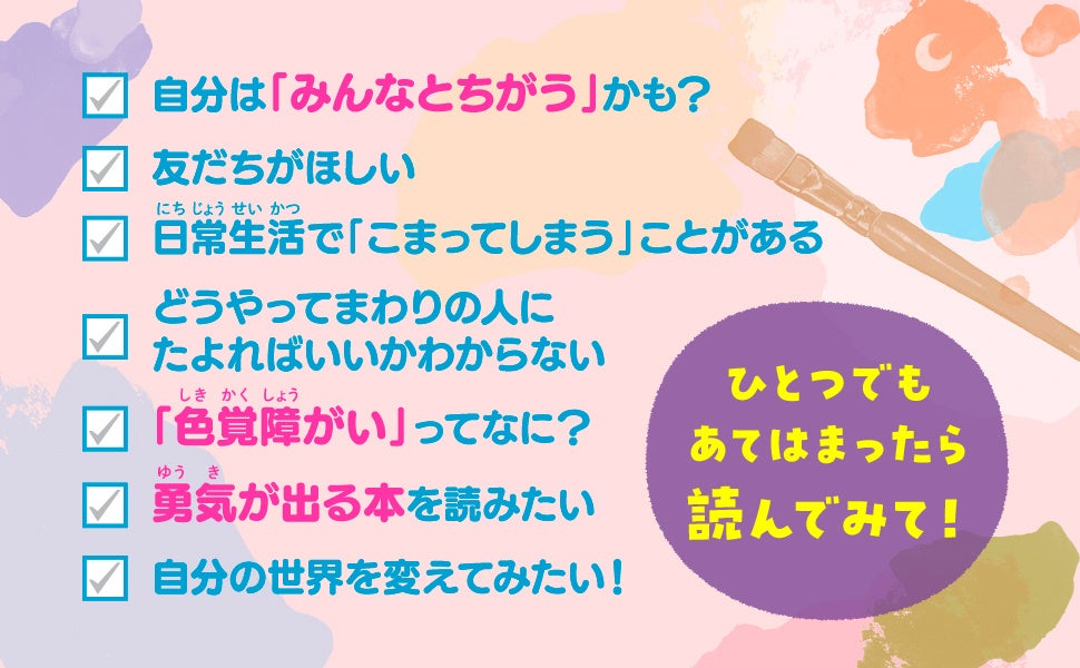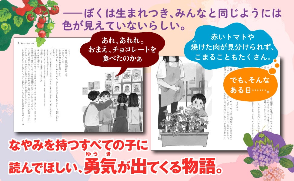 https://prcdn.freetls.fastly.net/release_image/1719/7742/1719-7742-5406ad283bca9f181505d69cd4f913f0-970×600.jpg Recommended by ophthalmologists and medical doctors! Ophthalmologist and medical doctor Kazuo Ichikawa, a leading expert in color vision deficiency research, also highly praised this book! “This is a great book that helps you think positively even when you have difficulty distinguishing colors.” 【Work Introduction】 “I’ve Found My Color!” is the story of Shintaro, the protagonist who is colorblind. Shintaro is suffering from color blindness after discovering he can’t tell tomatoes apart or tell when meat is cooked. His classmates, unaware of his condition, make fun of him, causing him to lose all confidence. However, after meeting his homeroom teacher who is considerate of his way of seeing, he begins to realize how unique his way of seeing the world is.