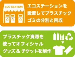best-mannered festival,” with no litter left on the grounds. Since 2018, Munakata Festival has partnered with Teijin Frontier Co., Ltd. to sort, clean, and recycle the large amount of discarded plastic containers with the help of local students. “Environmentally Advanced Music Festival” is also synonymous with Munakata Festival. Image