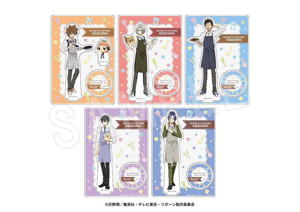 URL: https://prcdn.freetls.fastly.net/release_image/59072/714/59072-714-709fca75d4bf8720cf79b9e98cef84c8-1000×707.jpg ■Acrylic Stand – Cooking Practice Ver. (5 types) Sale price: ¥1,650 (tax included) Lineup: Tsunayoshi Sawada & Reborn, Hayato Gokudera, Takeshi Yamamoto, Kyoya Hibari, Mukuro Rokudo (5 types in total)