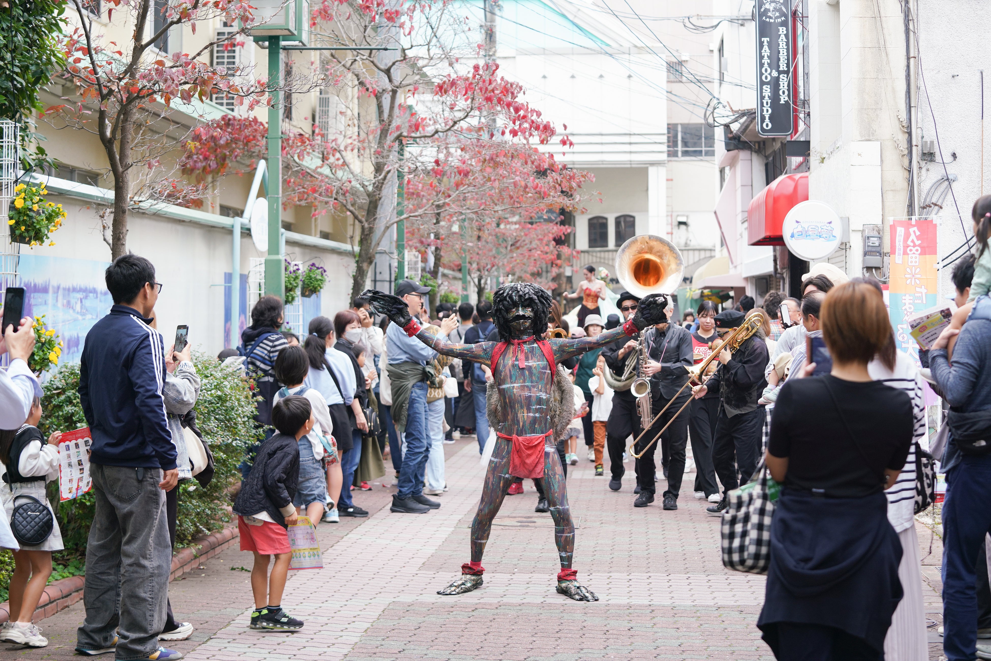 https://prcdn.freetls.fastly.net/release_image/124258/9/124258-9-2c4b91bde243dfb297cbbea6106bf4da-3900×2600.jpg Okk (walking act), a kappa yokai beloved by children, is not particularly scary in Kurume and is apparently a popular performer among children. Another feature is that the venues are lined up from the station toward Kurume City Plaza. “Generally, the venues are often centered around train stations. In Kurume, we’ve designed the program so that visitors can travel around each venue from the station to the main venue, Kurume City Plaza.”
