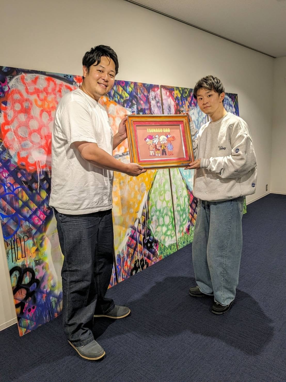 https://prcdn.freetls.fastly.net/release_image/148782/51/148782-51-a6654ba7aca7fb74dab99ed2463b5bc1-1280×1280.jpg TSUNAGU DAO’s icon image is also MUSASHI art. TSUNAGU DAO’s encounter with MUSASHI TD does not have a concept or position of a top executive or representative, but without the vision originally envisioned by founder Kenta Shimizu, this organization would not have been born. And those who resonated with that passion and vision continue to support the organization to this day. One such person is Kenta Nakai, CEO of Ishitomi Property. From there, like a magnet, friends who shared the same passion gathered, and many more connections were made. TD met MUSASHI and volunteers began supporting him around the same time TD was founded. Many TD members, wearing matching orange T-shirts, worked as staff and attended MUSASHI’s previous solo exhibitions. And in July 2025, TD members, as MUSASHI fans, supported and rejoiced together at the moment when one of MUSASHI’s dreams came true with the “MUSASHI Solo Exhibition of the World.”