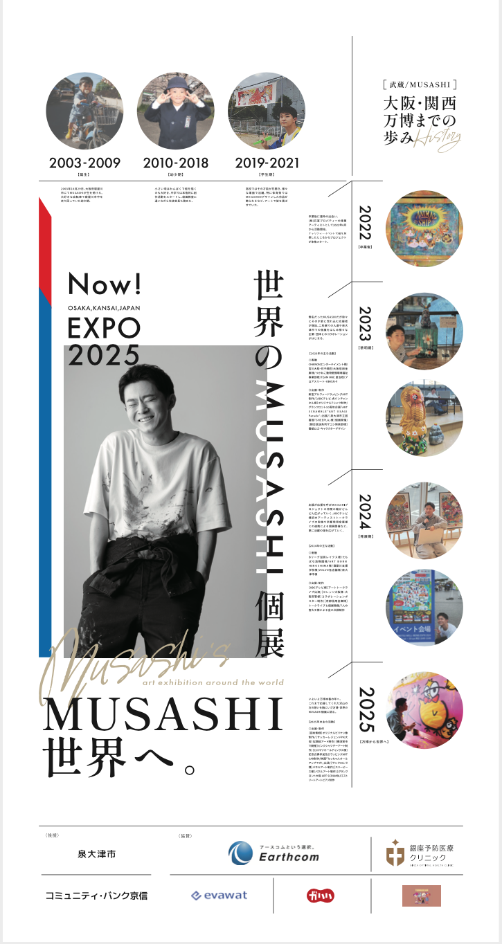 https://www.instagram.com/tsunagudao/ 《Secretariat information》 ■Name: Expo Musashi Solo Exhibition Secretariat ■Representative TEL: 06-6606-9638 ■Email: ishitomi.expoinfo@gmail.com ■Address: 1-40 Torikai Meiki-cho, Settsu City, Osaka Prefecture, 566-0063 《Company Information》 ■Name: Ishitomi Property Co., Ltd. ■Representative: Representative Director Kenta Nakai ■Address: 3-30-4 Dotno, Neyagawa City, Osaka 572-0077 ■Established: February 2015 ■Capital: 17 million yen ■HP: https://musashi-ishitomi-art.com/ 《Artist Information》 ■Name: MUSASHI ■Birthplace: Neyagawa City, Osaka Prefecture ■Age: Born in 2003 Since childhood, he has loved creating three-dimensional sculptures, and began painting seriously in junior high school. Originally from Neyagawa City, he skillfully incorporates markers, acrylics, and face paint to create colorful works and characters. Please take note of his skill and style in incorporating works inspired by beats and lyrics, as well as floral patterns, into canvases, digital art, and three-dimensional sculptures, conveying messages ranging from positive to dark. ■SNS: