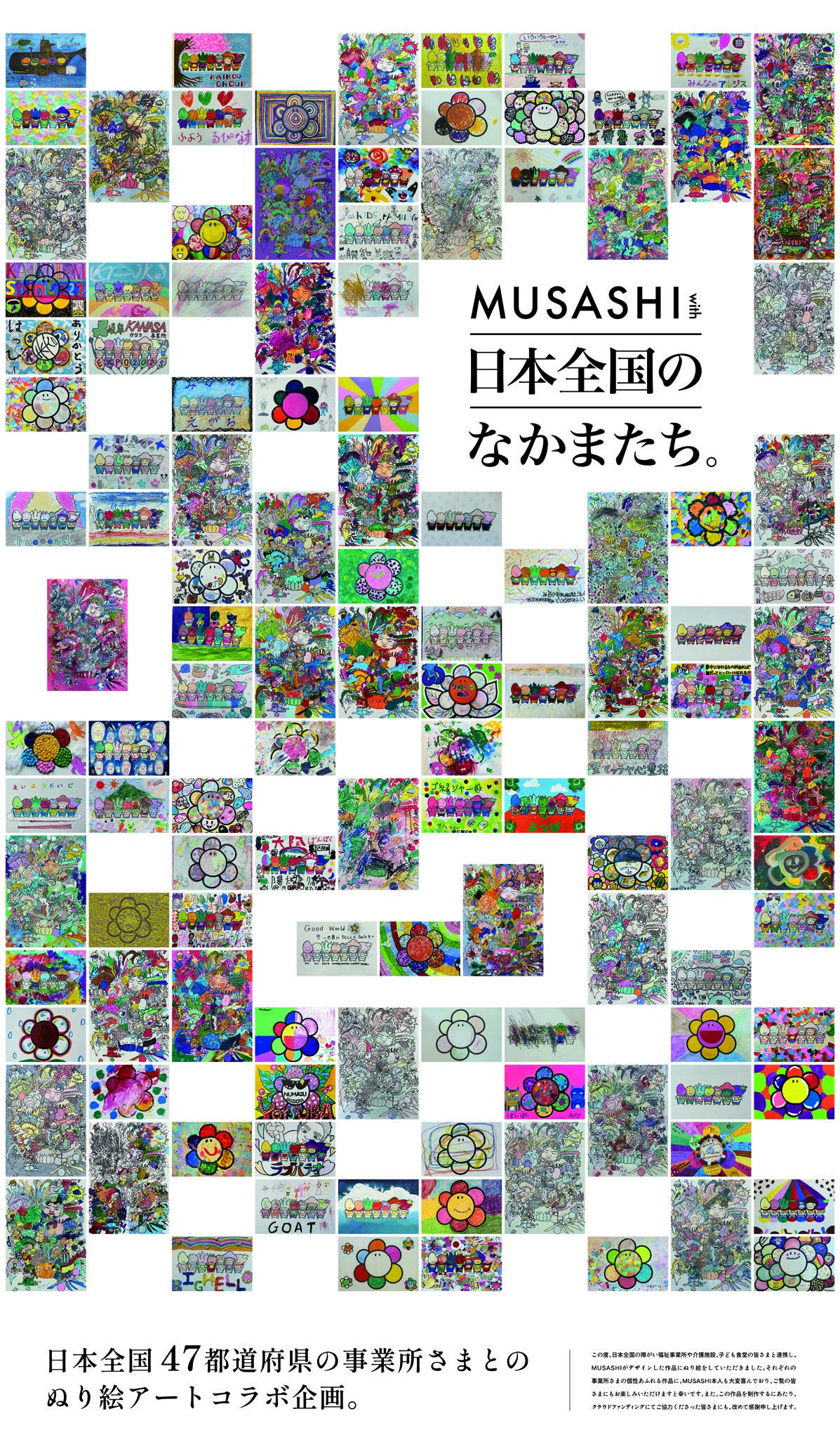 https://prcdn.freetls.fastly.net/release_image/148782/51/148782-51-b3a3b4a6c62a015387dd421e0a28933d-1197×2063.jpg “MUSASHI and His Friends Across Japan” is a collection of works by welfare facilities and children’s cafeterias in all 47 prefectures, who colored and pasted canvases of MUSASHI’s original drawings, and compiled them into a single digital collaborative work. On the day of the Expo exhibition, many users and related parties from the facilities and organizations participating in the coloring book came to view the works.