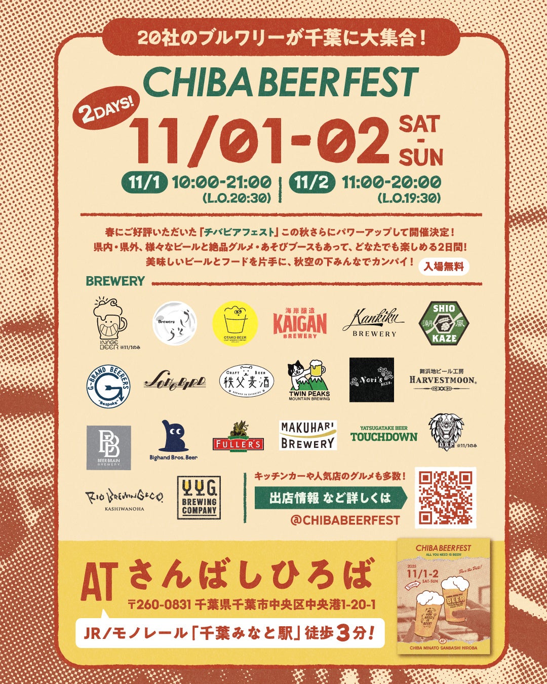 Willow Co., Ltd. Press release: October 17, 2025 To Members of the Press Chiba Beer Fest 2025 – ALL YOU NEED IS BEER – [Dates] November 1st (Sat) and November 2nd (Sun) Toast to 20 breweries and delicious food that pairs perfectly with beer! The Chiba Beer Fest, which was a huge hit in the spring, is even more exciting this fall. This year, 20 breweries will be participating, showcasing a wide variety of unique craft beers. There will also be booths offering delicious food and fun activities. It’s two days that everyone can enjoy.