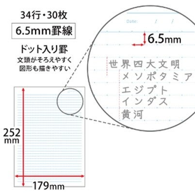 W179×H252×D10.5mm Border content 6.5mm ruled line 34 lines Dot ruled line Number of pieces 30 pieces Bookbinding Perfect binding Suggested retail price Open Release date October 31, 2025 *Release dates may vary by store. *The information contained in this press release is current as of the date of publication. It is subject to change without notice.