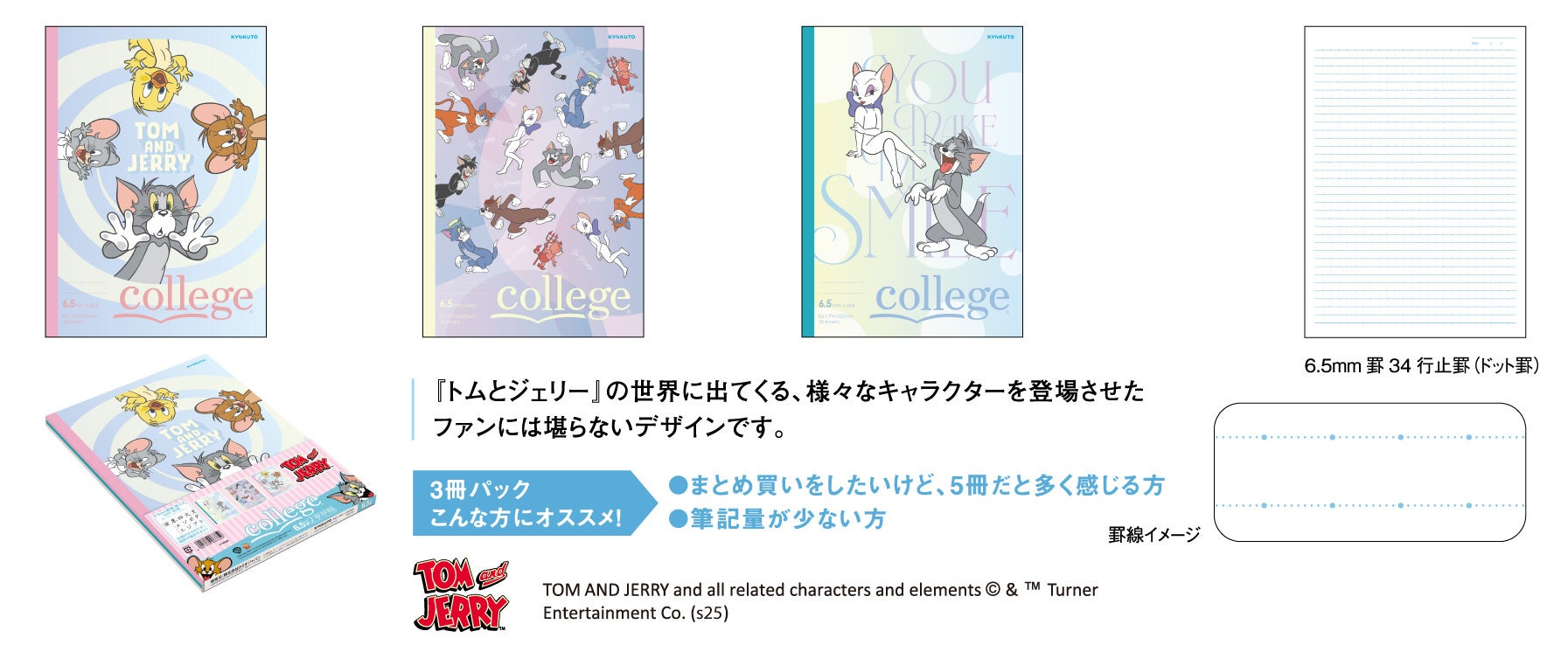 https://prcdn.freetls.fastly.net/release_image/171111/3/171111-3-85344f0f23098e60171b01a41c07cbdf-1793×738.jpg “Tom and Jerry Cheese Party” 5-Book Set ■Many characters appear! Set of 3 cutely designed books Tom and Jerry Friendship 3-Book Pack, 6.5mm Dot Ruled The characters from Tom and Jerry have been created in a cute design. This three-book set is recommended for those who want separate notebooks for different subjects but feel that a five-book set is too many.