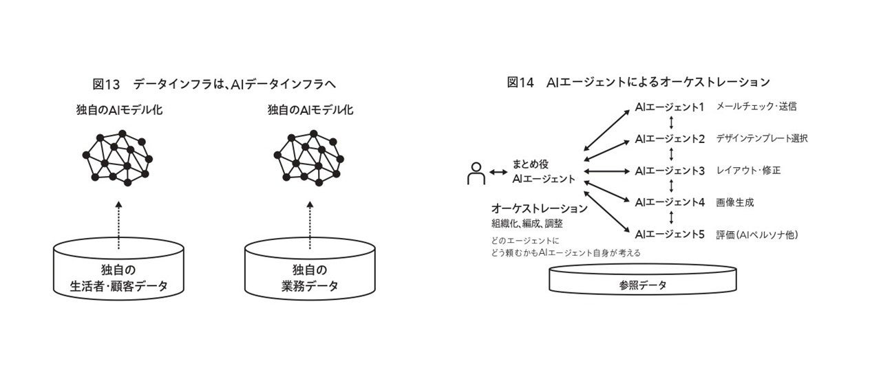 explosively large number of new product plans and strategic scenarios. Creative – Leverage AI enhanced with creator insight. Execution – Create and deliver hyper-personalized content using AI. As creative materials become more diverse, maintaining a consistent brand image presents a challenge. Media planning is shifting from quantity-based design to quality x quantity design based on prediction. Optimization (analysis and improvement) – ROI analysis and improvement evolve with AI. Data infrastructure becomes AI data infrastructure AI agents will be powerful allies | Example | Changes in marketing processes are already underway Two Key Points to Success Further Changes in Marketing Processes Brought About by Customer Changes The Path to Becoming an AI-Native Company Organizational Chart and Roles of an AI-Native Company Companies Moving Towards Becoming AI-Native Companies How Do You Create an AI-Native Organization? Steps to Becoming an AI-Native Company Risk: Deflation in the Marketing Industry Column: Namikawa Nagaru, Five Ways to Develop AI into Creators Chapter 4: Transforming the Customer Experience An era in which AI agents will be a third companion to people How to become a brand recommended by AI that people trust AI Native Journey AI Agent Owned Strategy AI Agent Paid Strategy AI Agent Earned Strategy How will media change? Information loved by both people and AI will win Risk: AI Interference in Decision-Making Chapter 5: Can AI Be a Force for a Better Society? Inclusion—AI’s transnational translation capabilities Well-being—Personal AI that detects pre-illness Climate and resource resilience—Connecting the happiness of individuals with the happiness of the entire planet Education and Skills – AI-powered “out-of-the-box” learning Culture – Improving people’s creativity Workforce – Expanding the door to successors Mediation – Proposing and mediating fair solutions as a third party Risks: AI algorithms, AI bias, and the AI divide Chapter 6: What kind of brand will be loved and chosen by consumers in the age of AI? The People-AI-Company Triangle Understanding the three relationships between AI, humans, and companies using the ABC Triangle Column: The unique power of humans in the age of AI [Appendix] Keyword collection