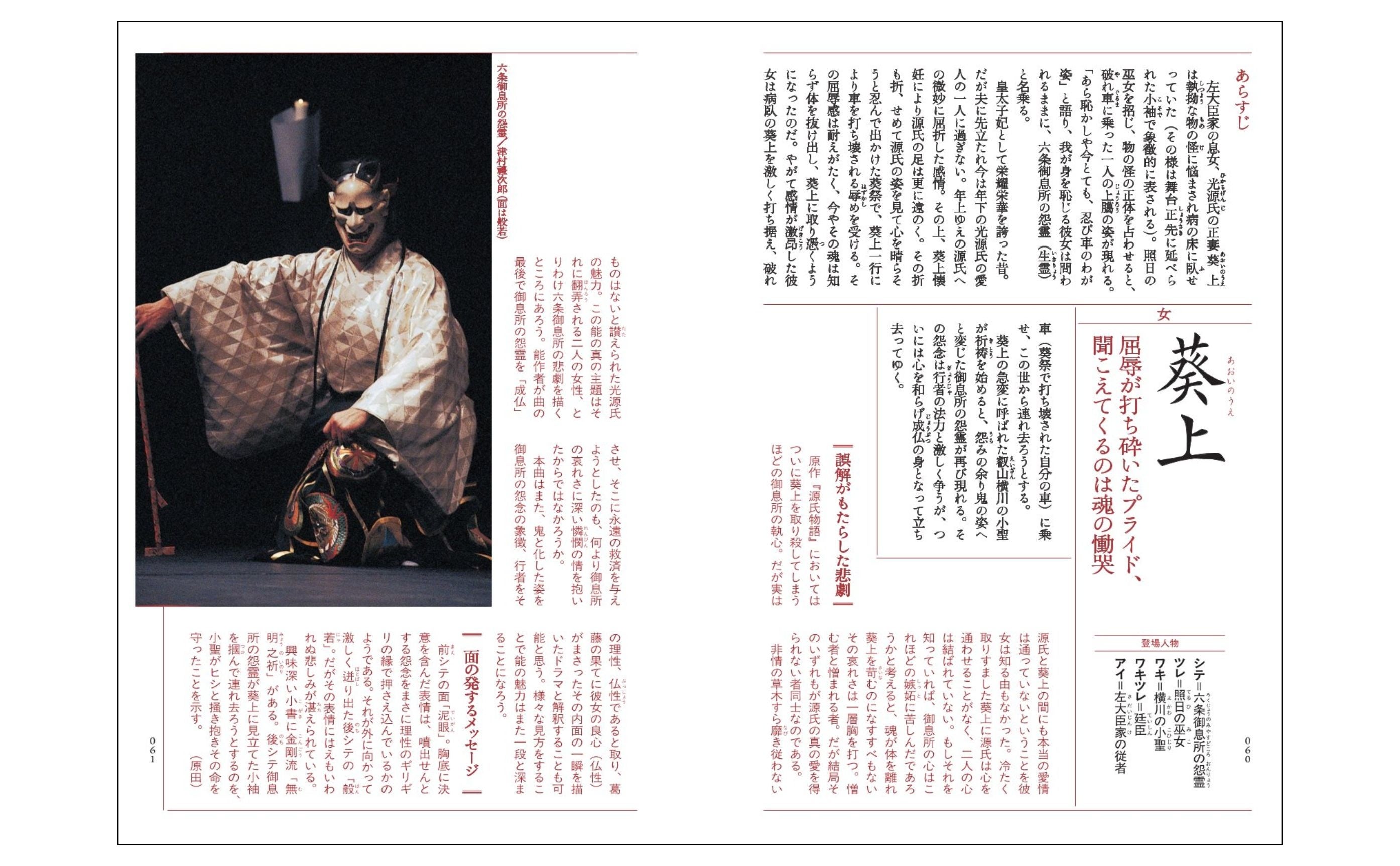https://prcdn.freetls.fastly.net/release_image/9728/2159/9728-2159-868708c0d0cdb6b0799384d5f0bd8536-2789×1725.jpg ♦Support your Noh spectator debut! Condensed Basic Knowledge of Noh The opening chapter provides a clear explanation of the basics that beginners need to know, such as the structure of the Noh stage, the roles of the performers, and viewing etiquette. Even those new to Noh can enjoy it with ease. This book introduces the appeal of Noh, which is linked to classical literature and Japanese spiritual culture, from a modern perspective. It’s the perfect introductory book for those new to Noh.