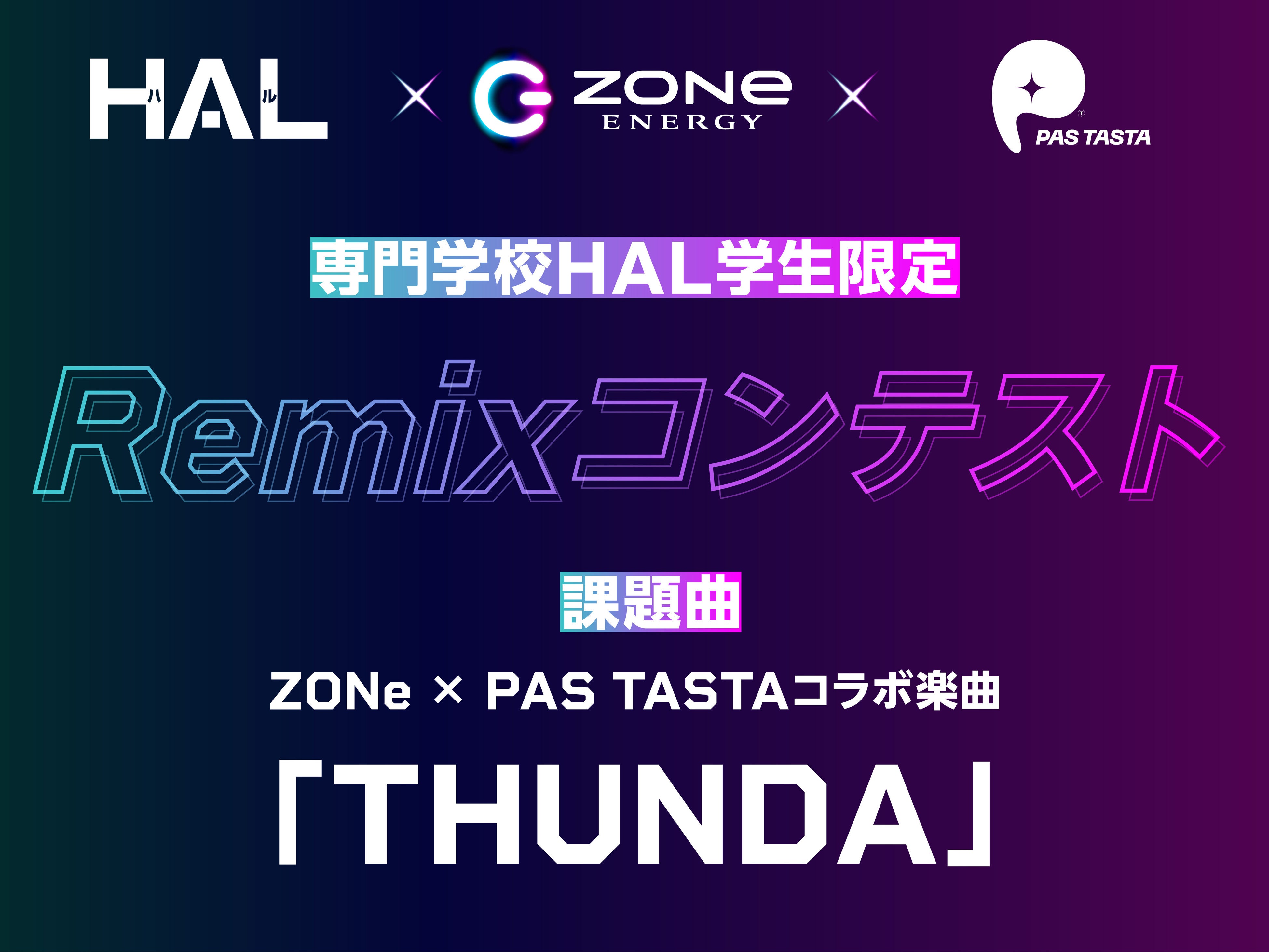 https://www.youtube.com/watch?v=fkgvO0HEFhU ◎PAS TASTA Comment hirihiri: I really like the release cut piano in the intro, it brought back some nostalgic feelings. The mix is also beautiful and cool. Congratulations. quoree: I was blown away by the stunning tone and mixing. It’s crisp everywhere you look, and the resulting sound is very pleasant to listen to, which is fantastic. Uyama Amane: I felt there was originality in the way you used the vocal stems. The opening and beat ideas were also interesting. I’d love to hear more of your future works. phritz: I thought the mixing was very skillful. The release cut piano was handled very well, and I personally really liked the tone. Congratulations. yuigot: I thought your interpretation of the rhythm of the main riff was interesting, and out of all the works you’ve participated in, this has the groove that would look best live. Kabanagu: The way you used the stems and broke them down was incredibly interesting. It was a remix full of ideas and a lot of fun to listen to! Contest Overview Name: “PAS TASTA “THUNDA” Student Remix Contest” Powered by ZONe ENERGY × HAL Vocational School Content: Create and submit an original remix using the stem data of the song “THUNDA” Prizes: Grand Prize: ¥100,000 Amazon Gift Certificate (1 winner) ZONe ENERGY Prize: 3 cases of HYPER ZONe (1 winner) PAS TASTA Prize: 3 months’ supply of pasta noodles (approximately ¥10,000 worth / 1 winner) complete set of PAS TASTA merchandise Application period: September 5, 2025 (Friday) 13:00 to October 3, 2025 (Friday) 23:59 Result announcement: Friday, October 17, 2025 Contest Organizer: PAS TASTA “THUNDA” Student Remix Contest Organizer ■PAS TASTA Image