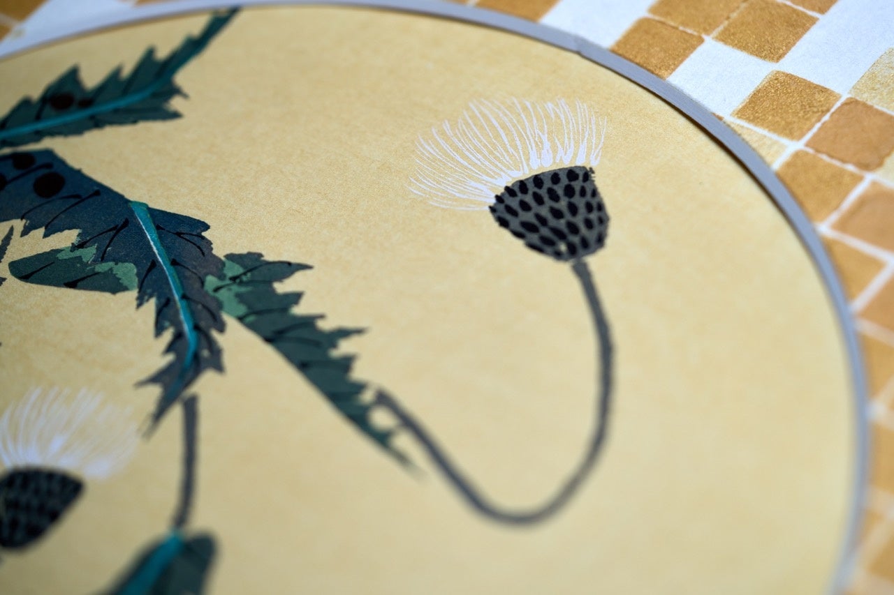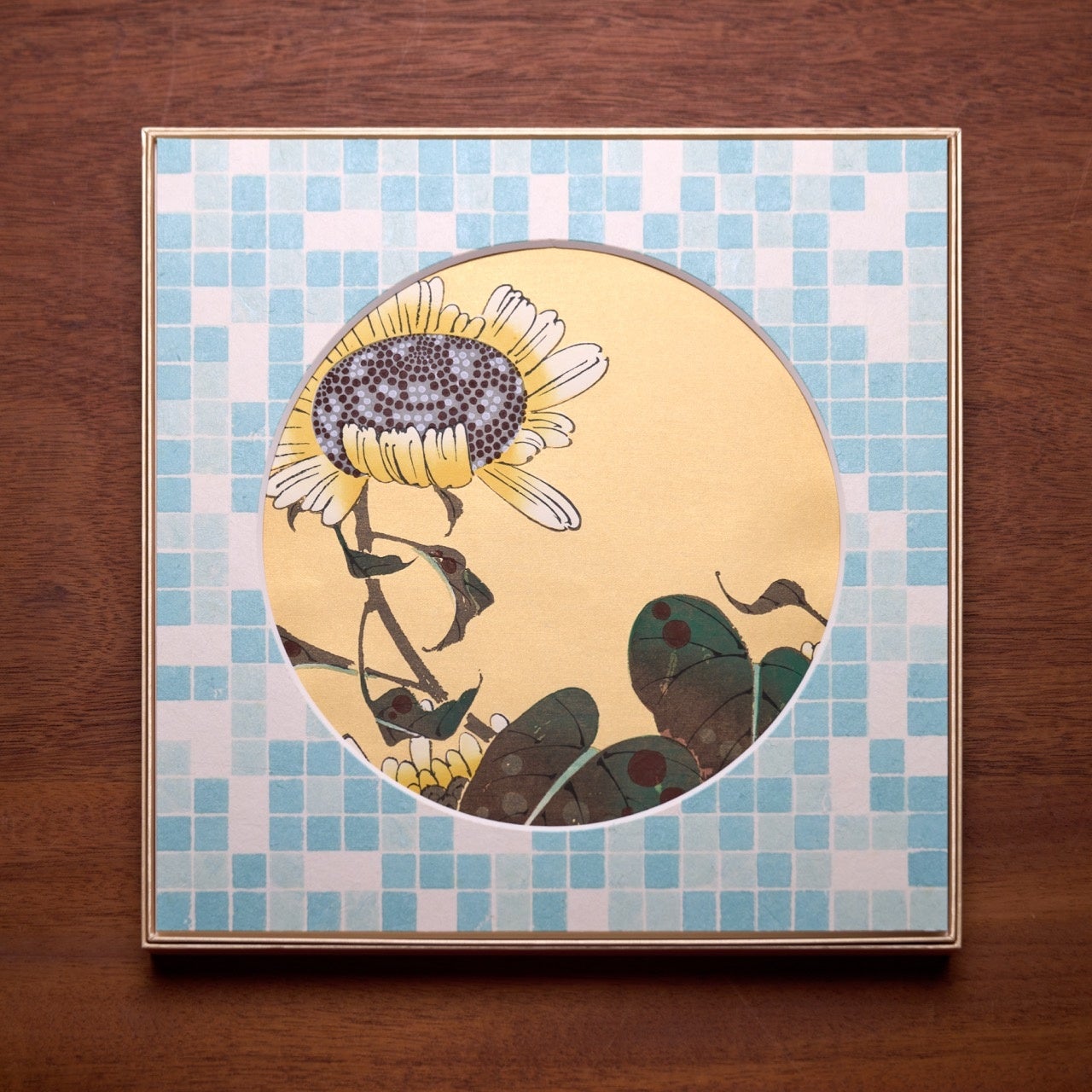 URL: https://prcdn.freetls.fastly.net/release_image/11454/783/11454-783-6f7f0a8f8fcdcf081c4b6d3b71096ddb-1280×1280.jpg Ito Jakuchu, “Floral Scene/Sunflowers” (Woodblock Print) Ito Jakuchu (1716? – 1800) was an eccentric painter active during the Edo period. He is known for his “Screen of Trees, Flowers, Birds, and Animals,” painted using the “square drawing” technique, and his ultra-detailed “Flock of Chickens.” “Floral plants” is a general term for plants cultivated for ornamental purposes. The “Floral Ceiling Painting” was painted as a ceiling painting in the Kannon Hall of Sekihoji Temple in Fukakusa, Kyoto, where Jakuchu lived in his later years, and is now housed at Shingyoji Temple. A variety of flowers are depicted within a circle measuring approximately 33 centimeters.