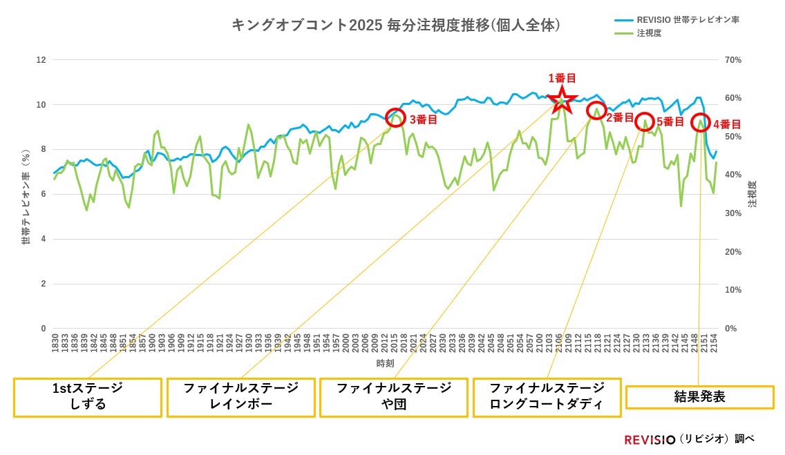 (Headquarters: Chiyoda-ku, Tokyo; President and CEO: Yasushi Gunya; hereinafter referred to as REVISIO), which installs devices equipped with human body recognition technology in homes to measure “attention” to television screens, We have released an analysis using viewing quality data to find out which scenes were most watched for “King of Conte 2025,” which aired on the TBS network on Saturday, October 11, 2025.