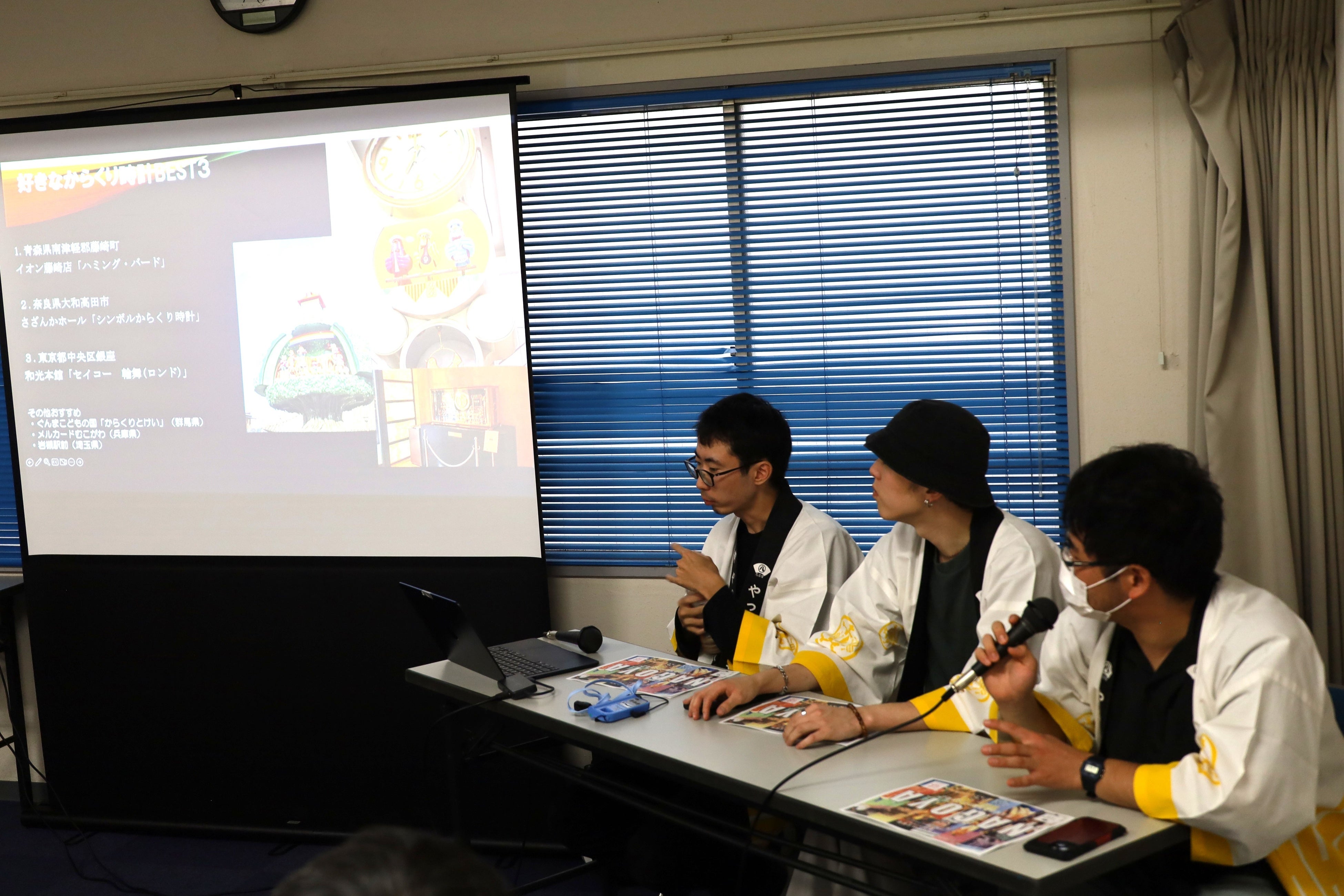 2018年に結成。出身は北海道、青森、愛媛と様々で、現在の居住地も京都や岐阜、富山など様々です。子どもの頃に出会ったからくり時計の不思議さと可愛らしさに惹かれ、インターネットを通じて活動を続けており、最近では、好きが昂じて修理まで依頼されるほどです。 Xアカウント @motionclocks E-mail dora9kuma5js@docomo.ne.jp 主な活動内容は次の4つです。 ・全国のからくり時計の調査と紹介、ポータルサイトの運営 ・SNSを中心とした最新情報・魅力の発信 ・からくり時計の修理・保全のサポート ・記録撮影・映像アーカイブの制作