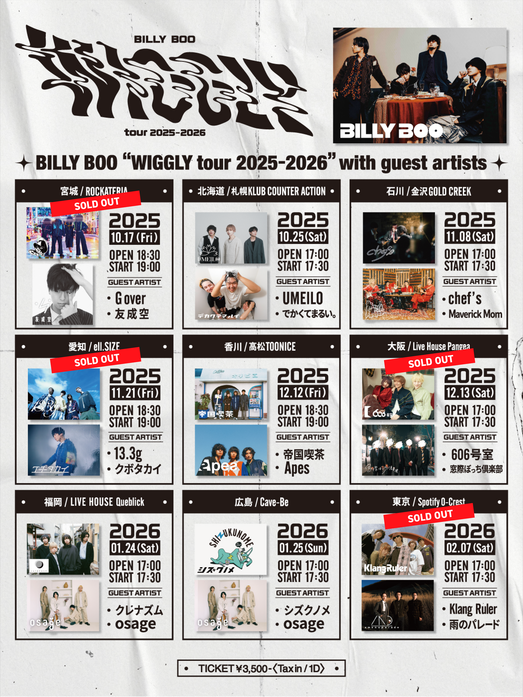 Sony Music Labels Inc. Press release: October 17, 2025 To Members of the Press Four-piece band BILLY BOO’s “WIGGLY tour 2025-2026” has kicked off! On the first day of the tour, during their hometown performance in Sendai, they announced the digital release of their new song, “Love Song”!