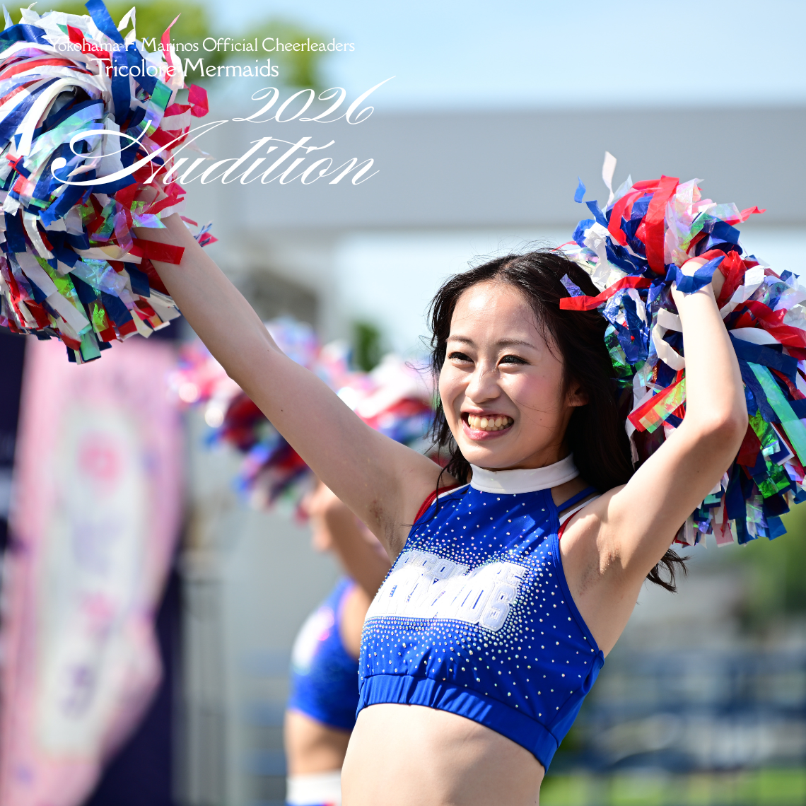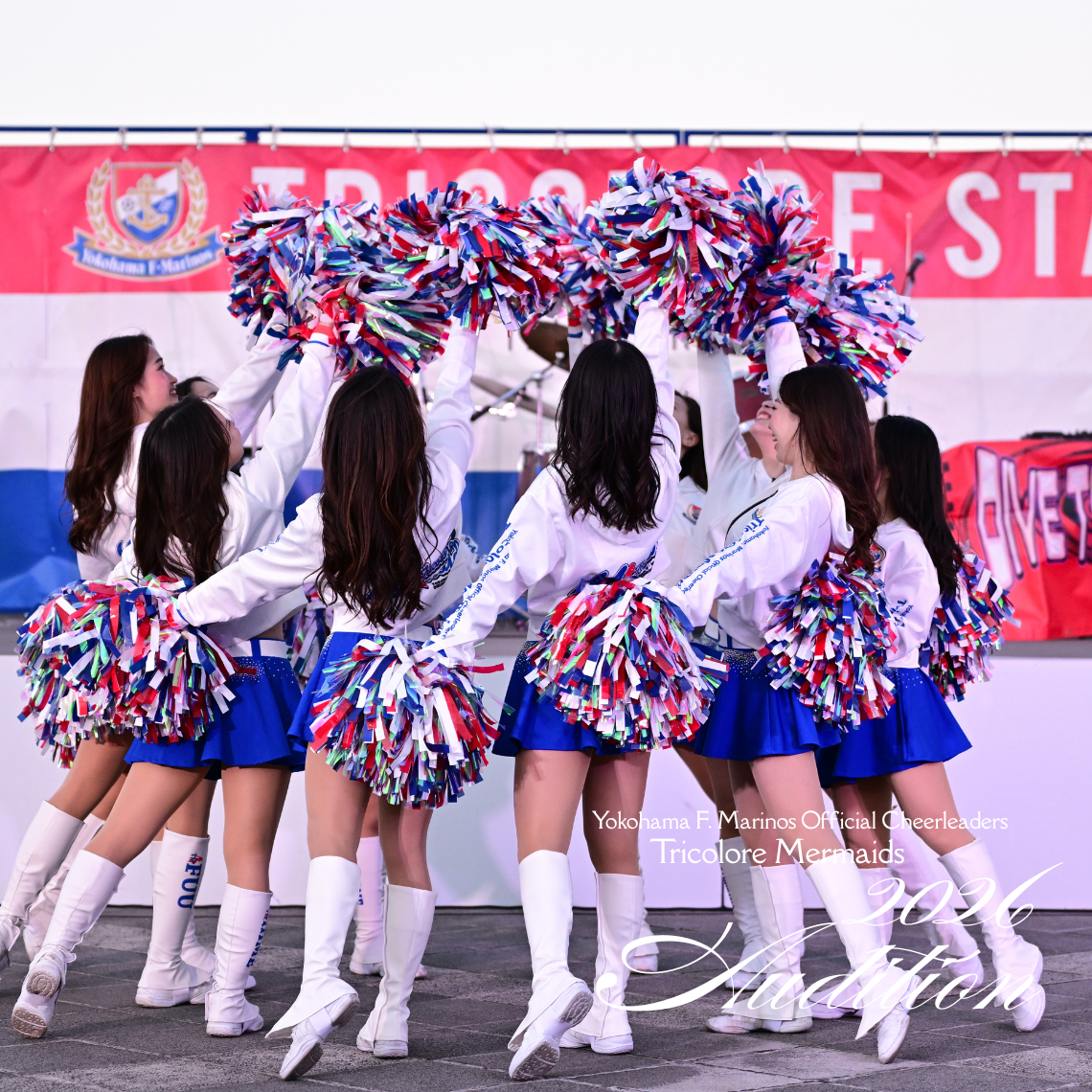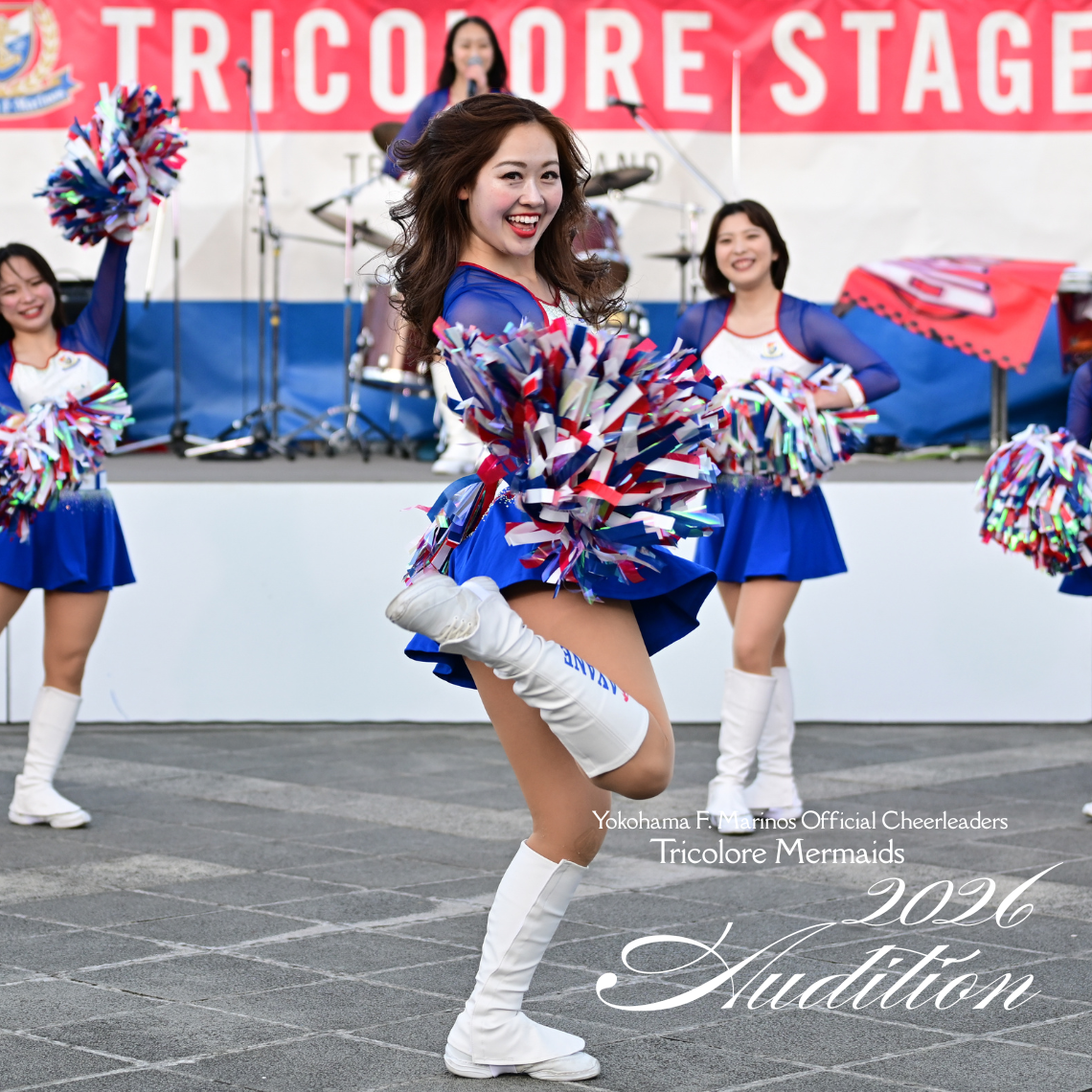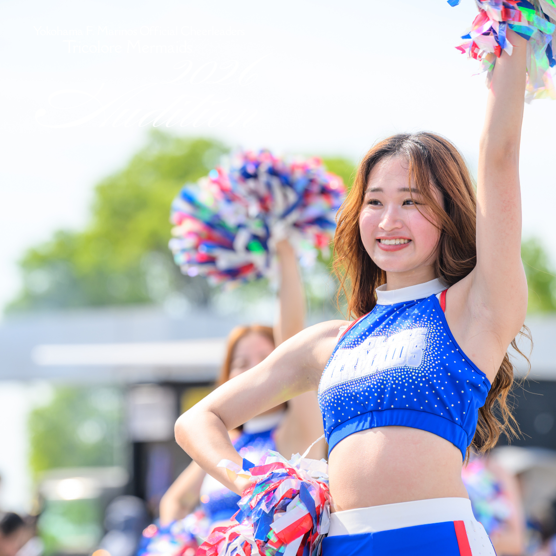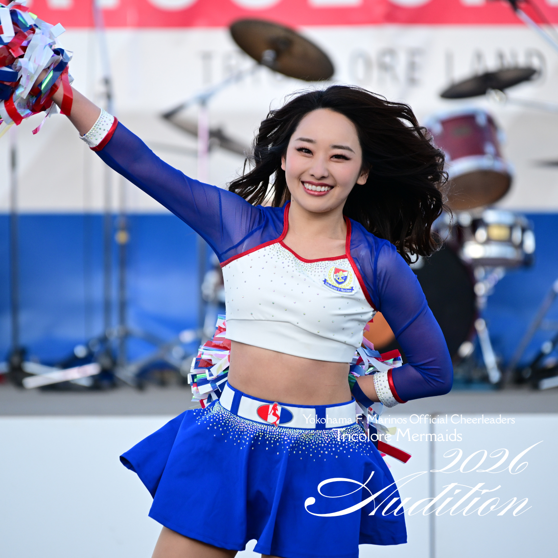 Cheerleaders, Tricolore Mermaids, are recruiting cheerleaders for the 2026 season. The Tricolore Mermaids love Yokohama F. Marinos, love their hometown, and believe in the power to make someone smile. Why not let your passion shine in the stadium next season?