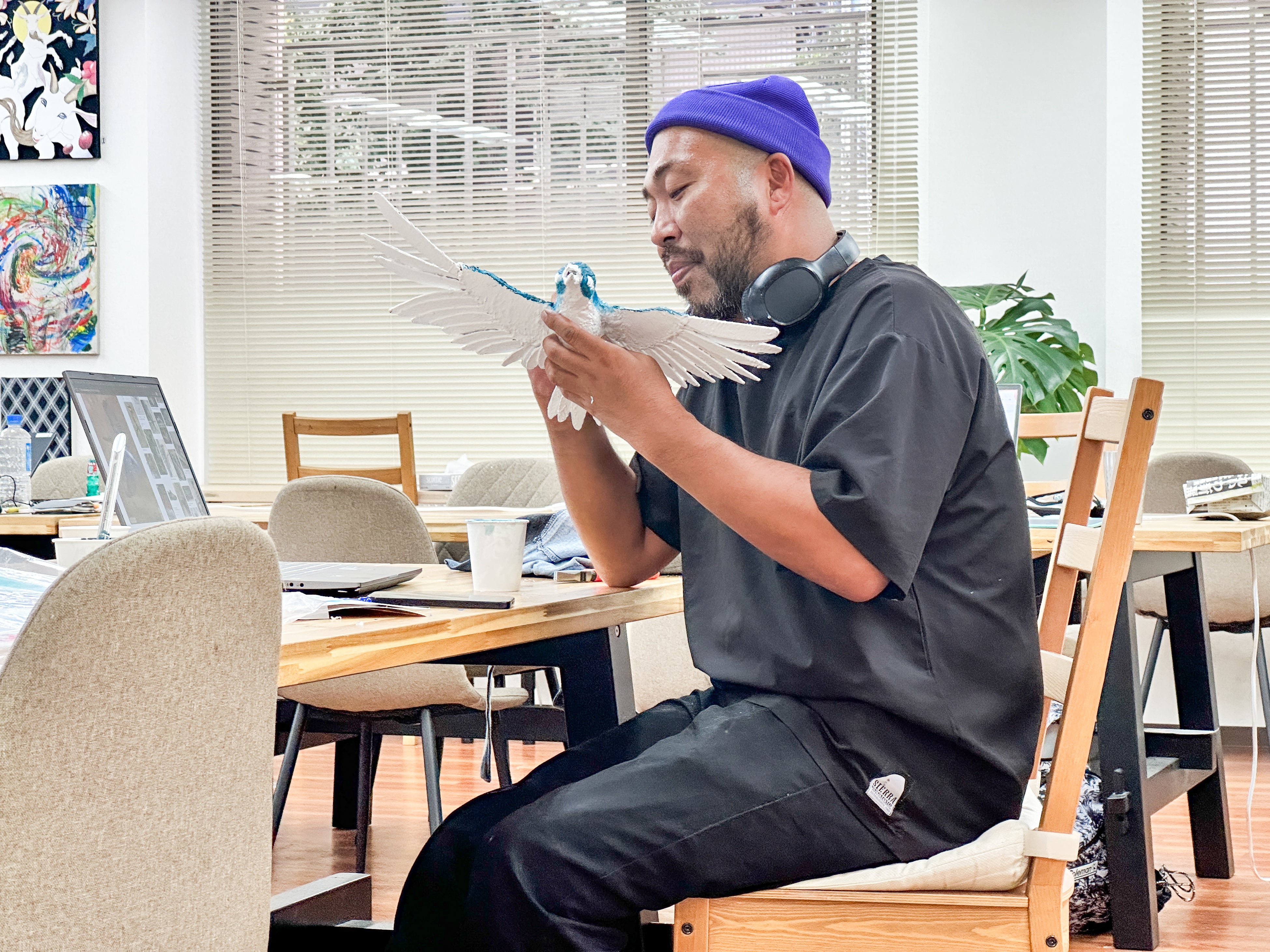 kaminaka.About hirofumi Kizuna Holdings Co., Ltd., Atelier Nakaoe Park Front Having been interested in painting since childhood, he became engrossed in replicating the human skeleton during elementary school. Drawing on his diverse experiences as a teenager, he began creating objects themed around life and living, blossoming into a unique artistic perspective. Utilizing his keen observational skills and rich imagination, born from his neurodevelopmental characteristics, he creates paintings characterized by vibrant colors and bold contrasts. His life’s work, particularly his bird motifs, reflects deep emotional expression and a unique worldview. He has expanded his activities beyond painting to include music and spatial design, using art to convey a message to a society in which diverse personalities coexist. Live painting involves improvisational and dynamic expression using hands and arms, projecting intuitive inspiration into the work.