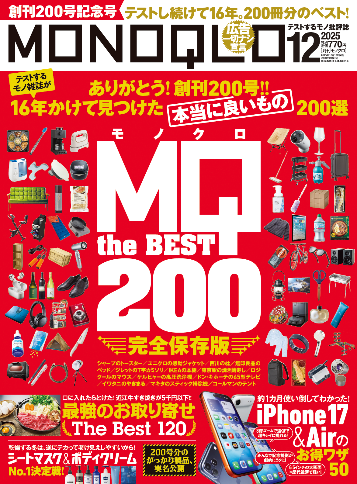 https://prcdn.freetls.fastly.net/release_image/17263/384/17263-384-5ca702dfaeb23c3acc76fbca05dc842b-1108×1532.png The December issue features a special feature on “200th Issue Commemorative MON The Best Best”! After 16 years of testing products, MONOQLO has finally reached its 200th issue this month. As a token of our appreciation to all our readers who have supported the magazine, we have compiled a selection of only the best products. Other articles include “iPhone 17 & Air Tips” and “Top 10 Body Moisturizing Skincare Products.” The December issue will also deliver carefully selected information to update your lifestyle.