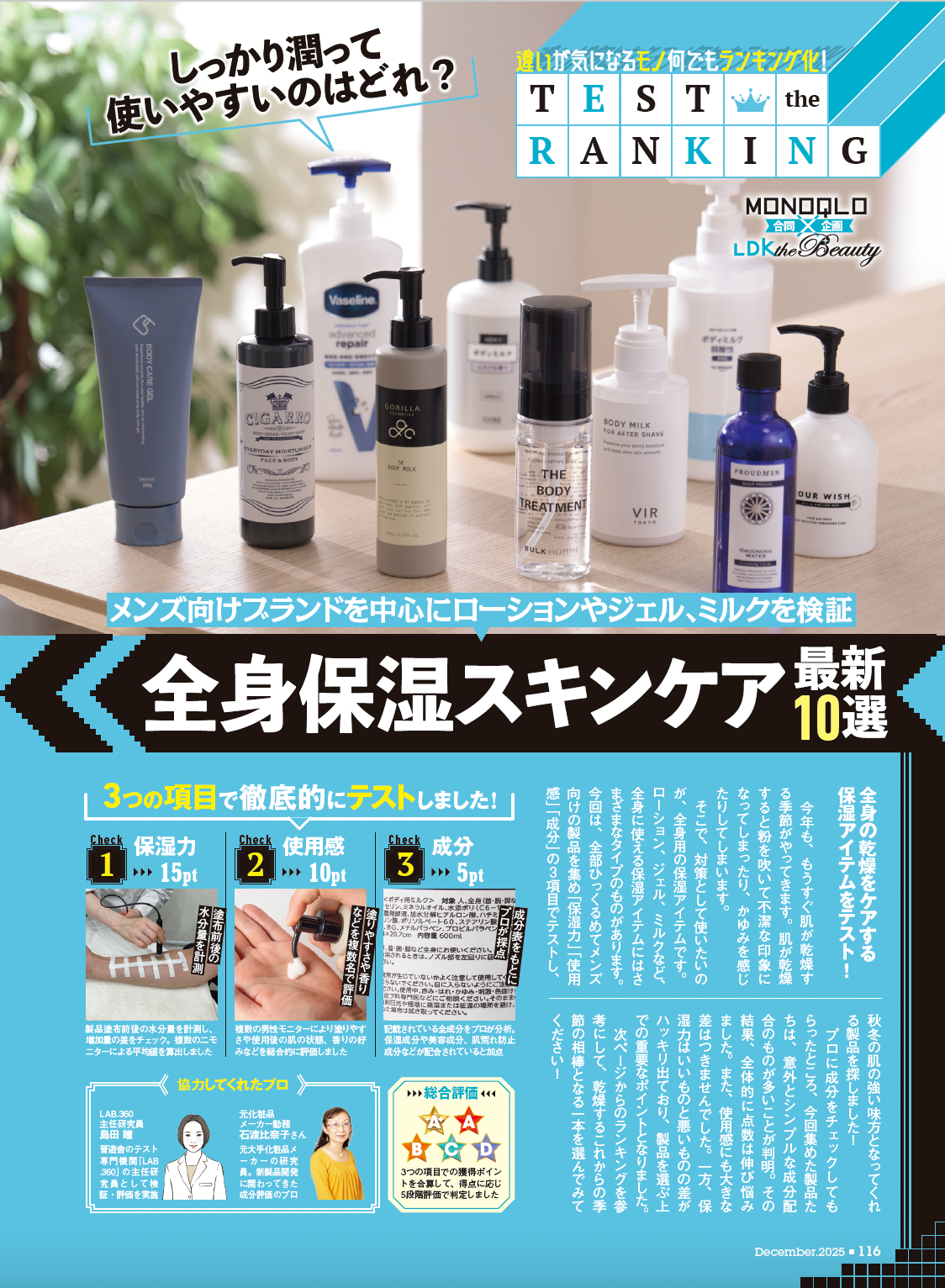 https://prcdn.freetls.fastly.net/release_image/17263/384/17263-384-68f3124086cafe88f335ac15be93741d-1124×1532.png We’re testing moisturizing products from men’s brands to combat dryness all over the body! TEST the RANKING / Top 10 Latest Full-Body Moisturizing Skincare Products The dry skin season is almost upon us again this year. So, the best thing to do is use a moisturizing product for the whole body. This time, we gathered men’s products and tested them based on three criteria: moisturizing power, texture, and ingredients, to find the product that will be a great ally for your skin in the fall and winter. Choose the one that will be your best friend for the upcoming dry season!